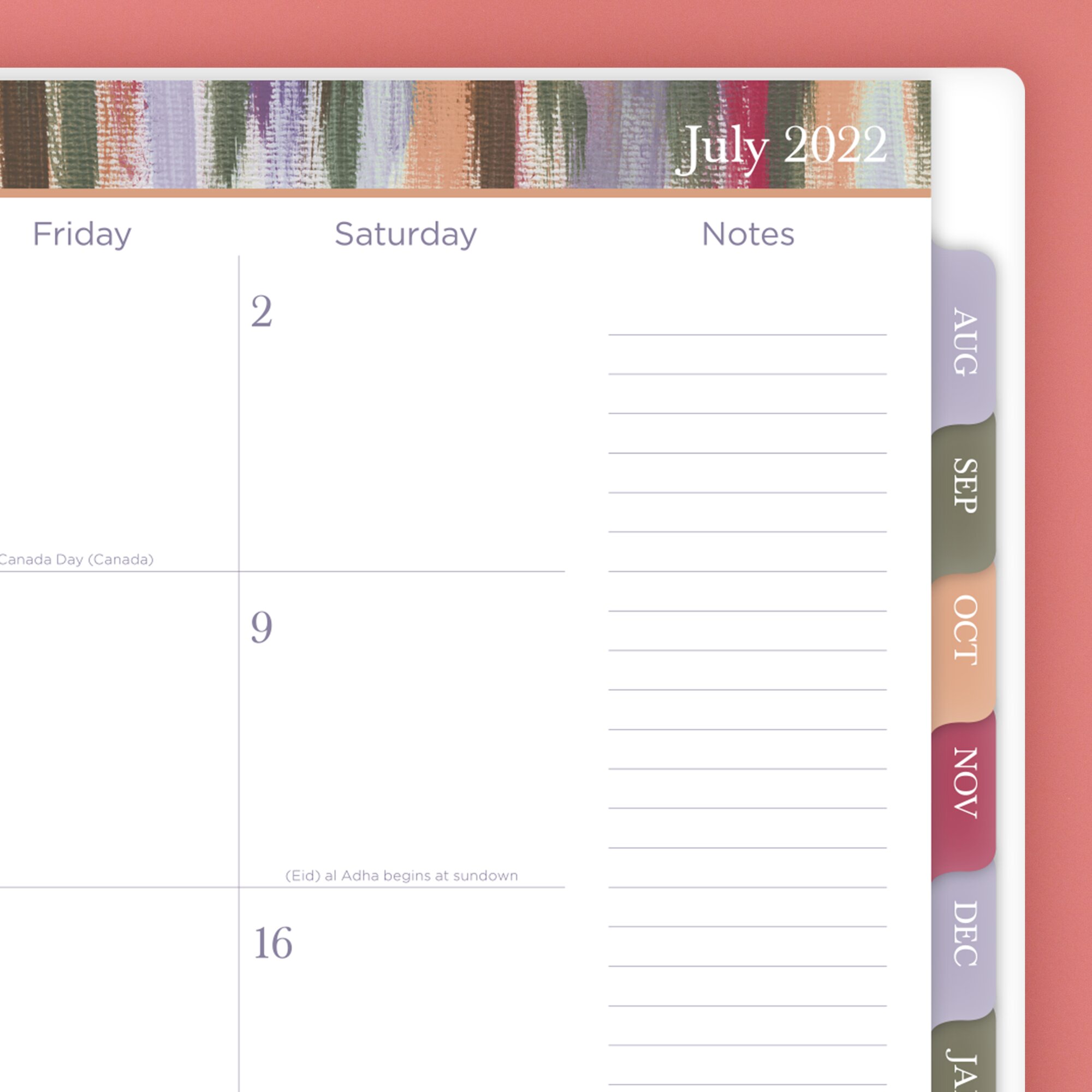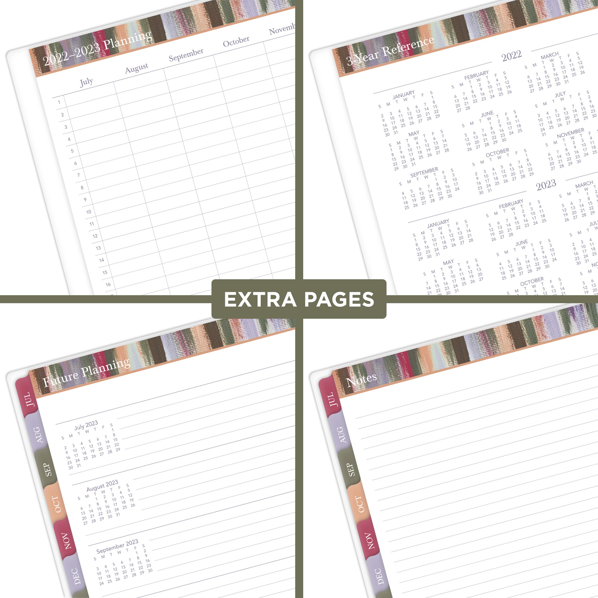- Tasteful planner with soothing stripes covers 12 months from July 2022 – June 2023 for academic year planning
