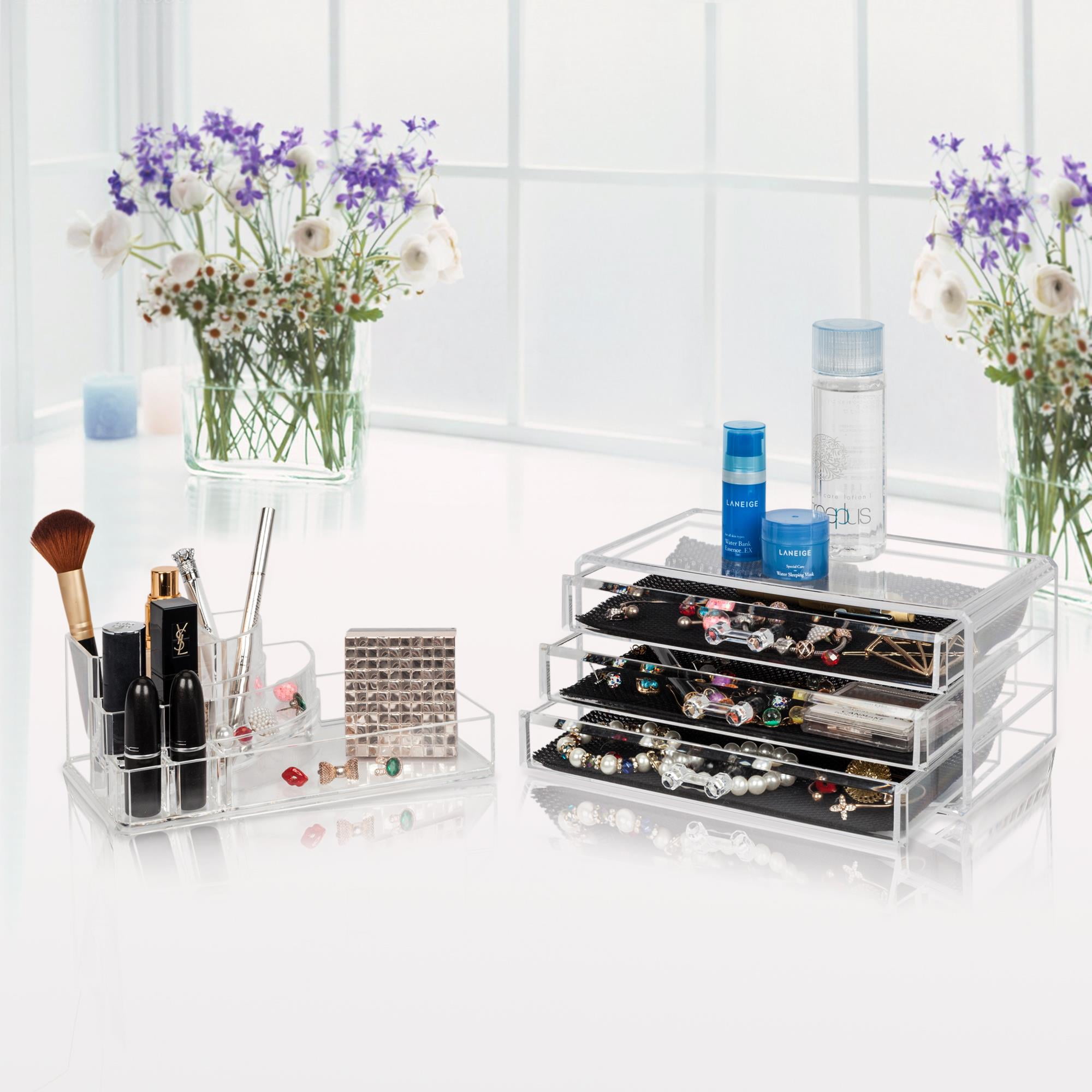 Ktaxon 3 Large Drawer Acrylic Makeup Case Cosmetic Organizer Holder Jewelry Storage Box