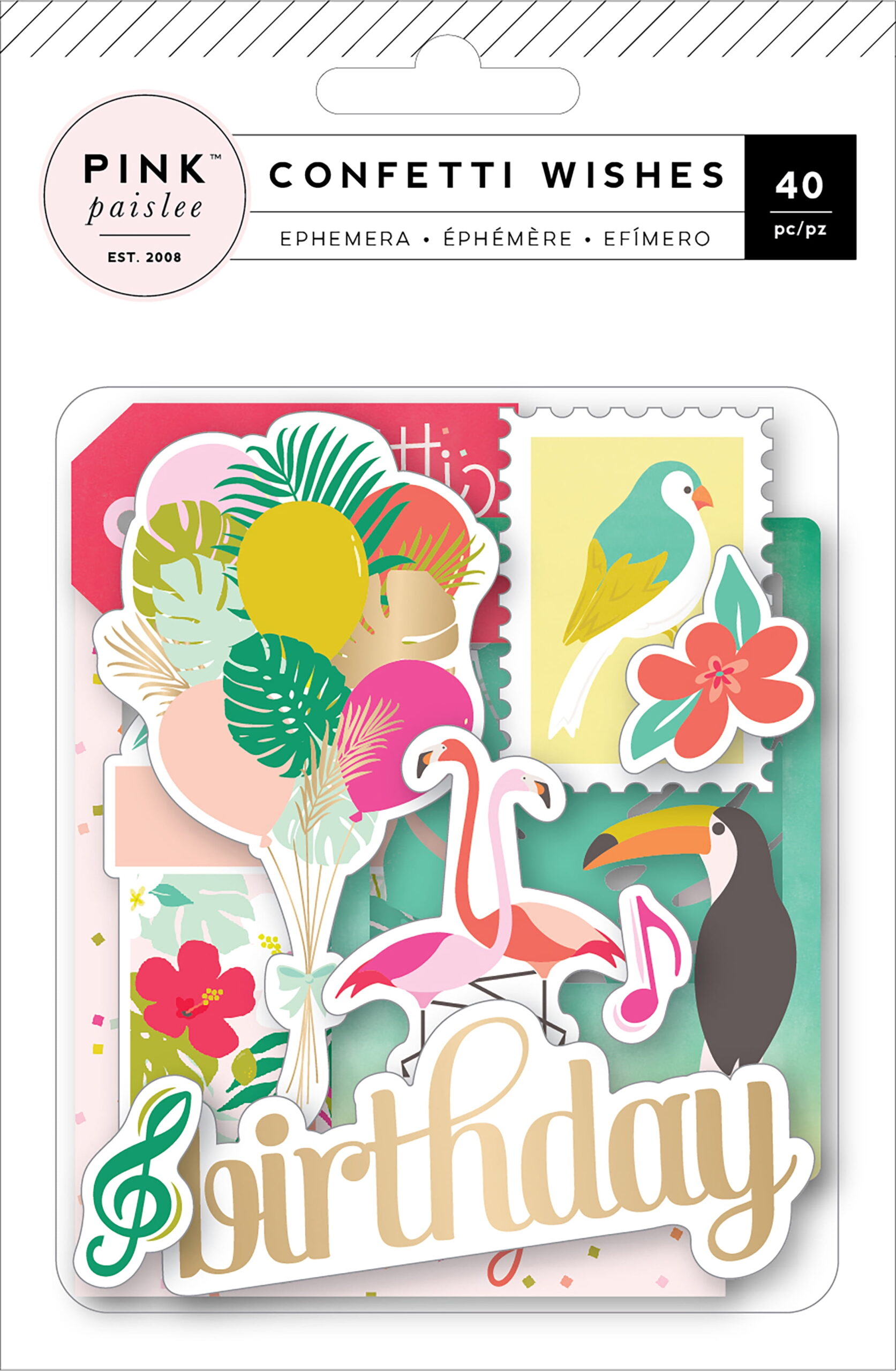 Confetti Wishes Ephemera Cardstock Die-Cuts 40/Pkg-W/Matte Gold Foil