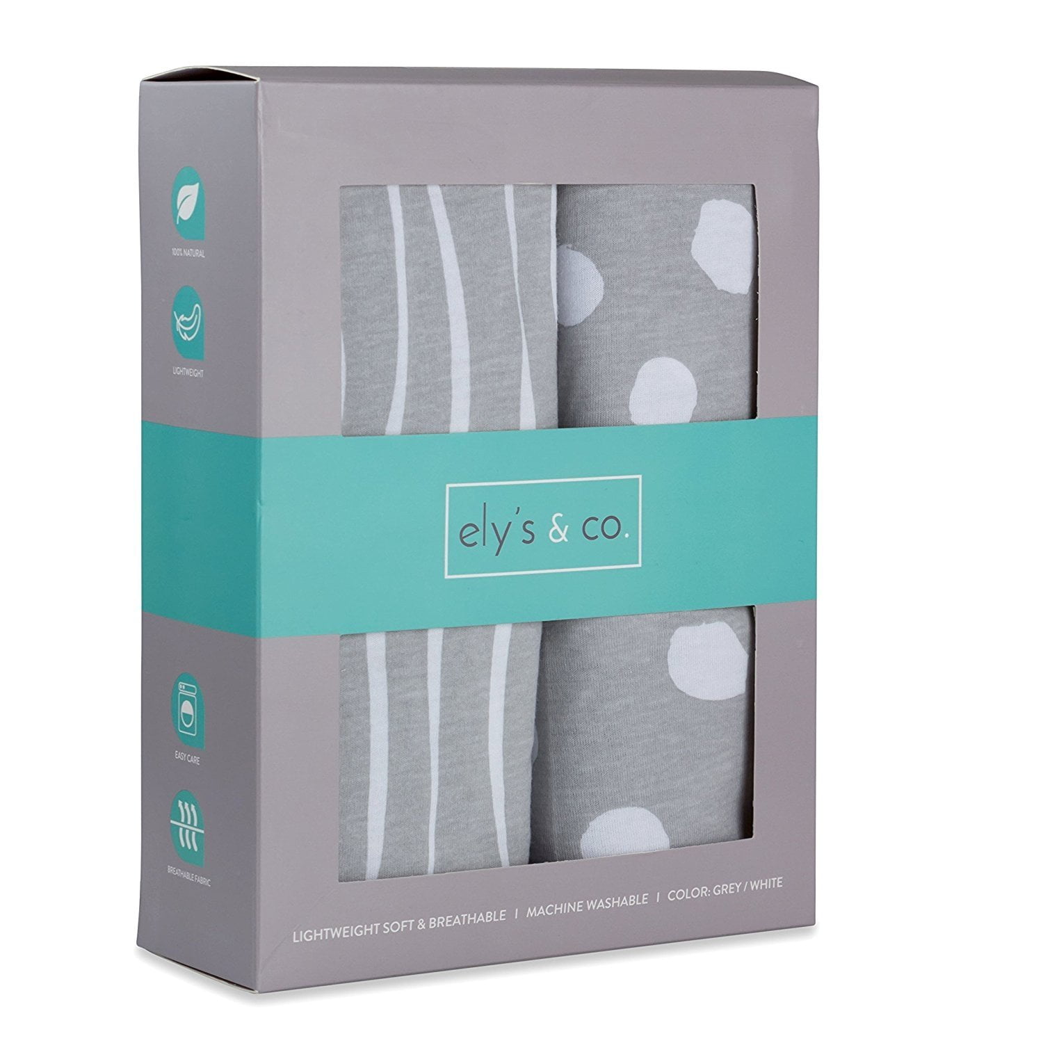 Crib Sheet Set 100% Jersey Cotton 2 Pack – Grey and White Abstract Stripes and Dots