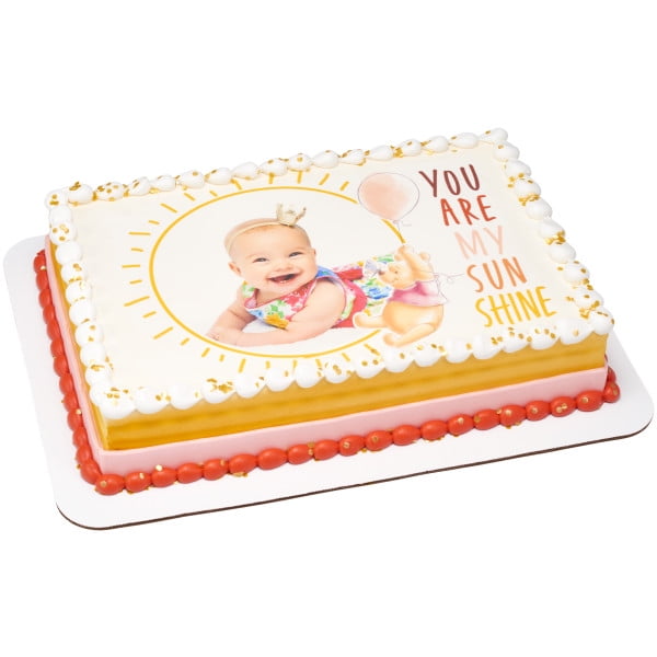 Use this beautiful cake topper as the centerpiece to any Winnie the Pooh inspired celebration! Personalize this image with your own photo! Image is printed to fit a 1/4 sheet cake.Disney Baby Winnie The Pooh Edible Image Cake Topper Frame (1/4 Sheet)