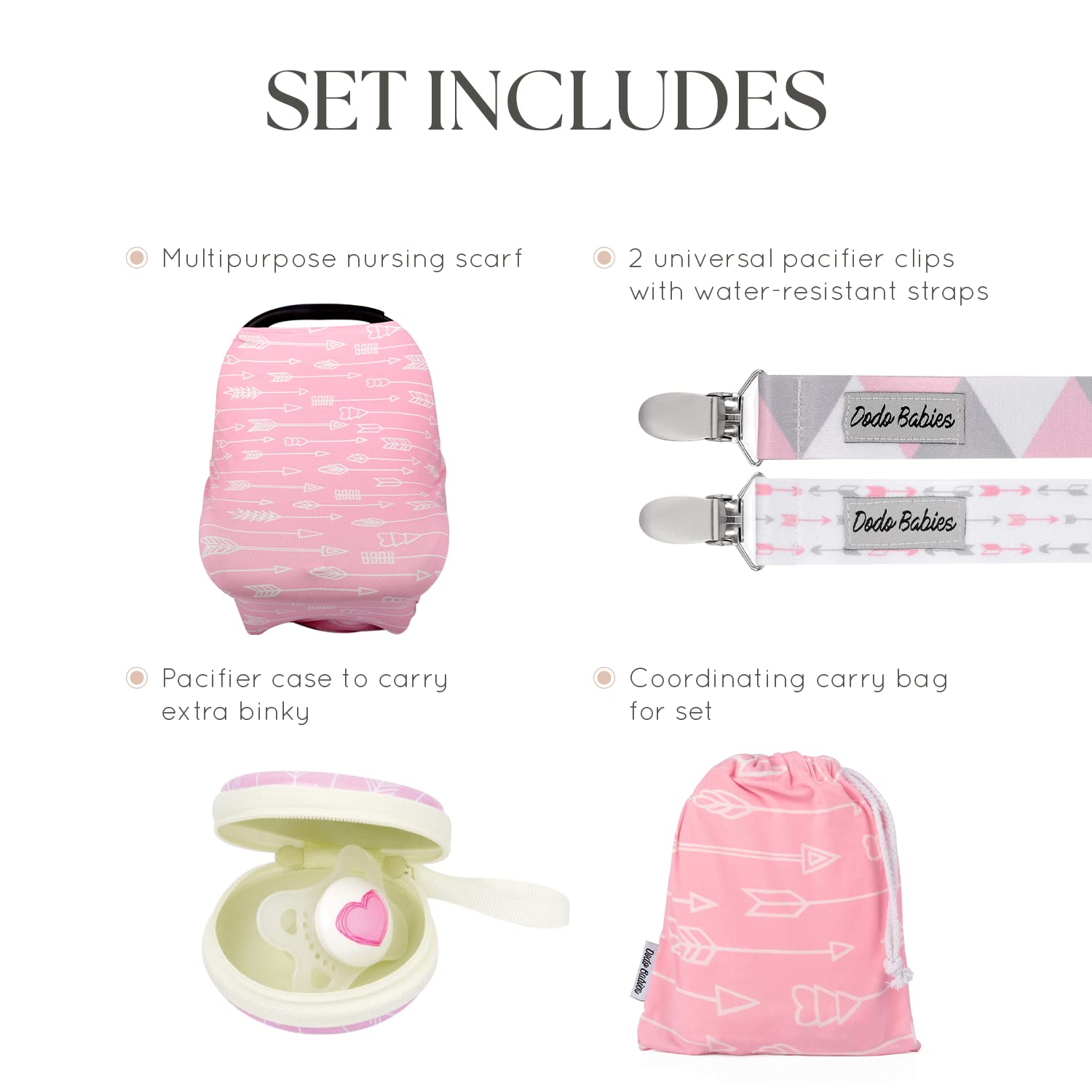 - COMPLETE SET: This nursing scarf for breastfeeding comes with special bonus items, including 2 practical pacifier clips, a pacifier case and a matching storage bag, making transportation and storage a breeze!