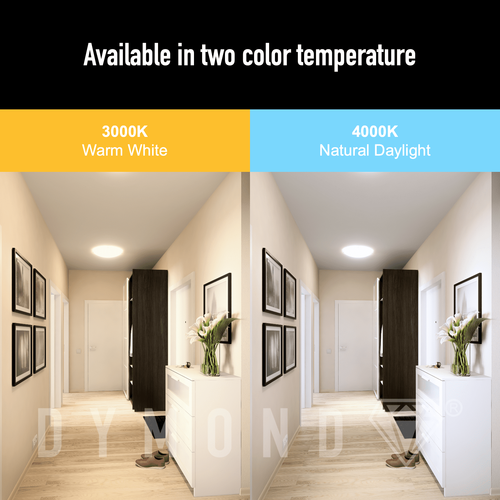 This sleek and modern brushed nickel LED flush mount ceiling light provides a high-quality light source that will complement your interior space. With integrated LED technology, you do not need to buy or replace a light bulb again! The dimmable feature provides flexibility allowing you to adjust the perfect brightness and create the most suitable ambient setting for your home. This fixture is designed with low power consumption for energy saving while producing bright light output. This product is available in four sizes (10", 12”, 14”, 16”) and three color temperatures (3000K, 4000K, 5-way adjustable light color).
