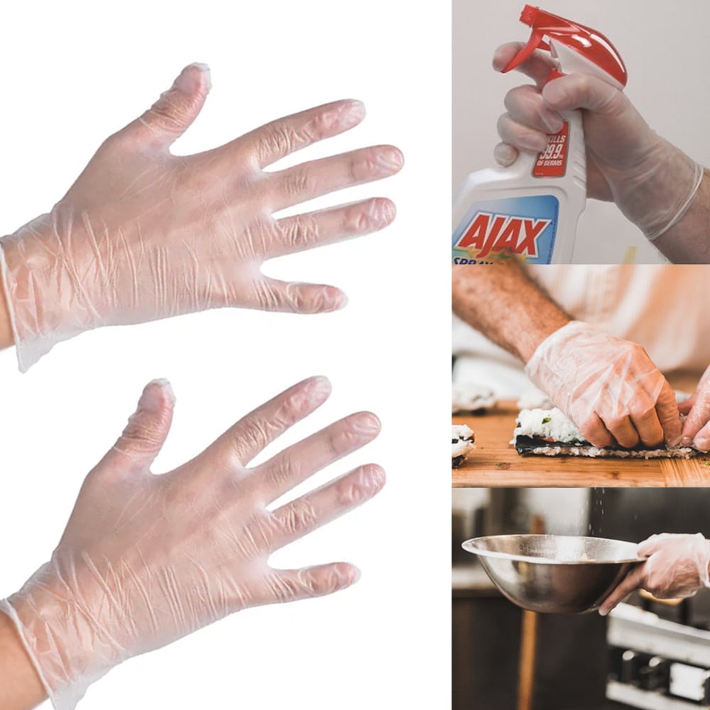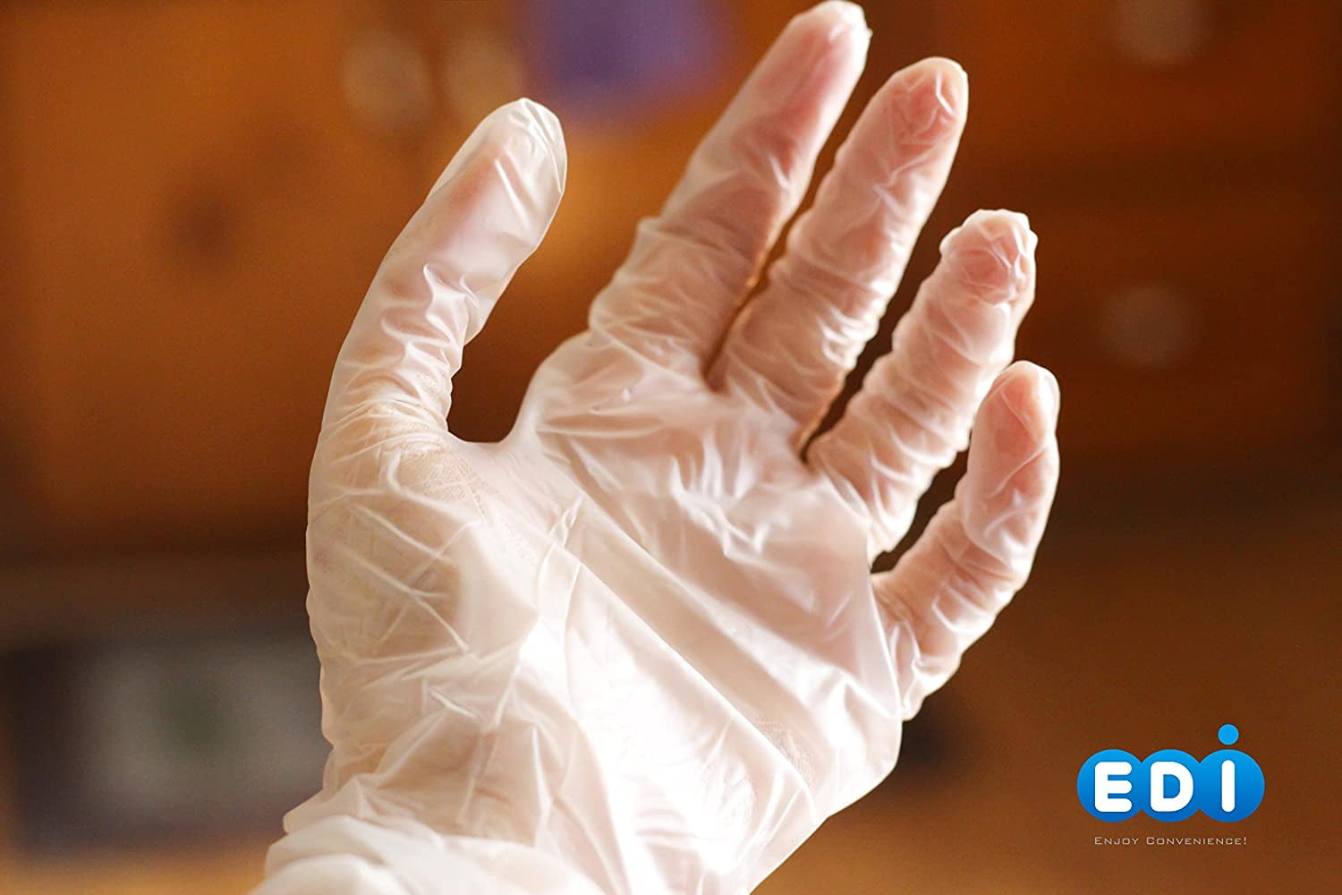 Keep Your Hands Clean: Our gloves offer a great full-barrier protection for cleaning tasks or food handling. Keep dirt, odors, and liquids from making unwanted contact with your hands.Powder-Free: Easily slide them over your hands without stickiness or residue. They’re also latex-free!Multifunctional: Perfect for handling food, household cleaning, hair dyeing, grooming your pet and other sanitary purposesFits All Hands: Made to fit both the left and right hand. Available in Small, Medium, Large, and Extra Large – a great fit for everyone!Bulk Pack: Perfect to buy in bulk, so you can swap them out as needed and simply dispose of the used ones.EDI 100 Clear Powder Free Vinyl Disposable Food service Industrial Grade Gloves (Small, [200])