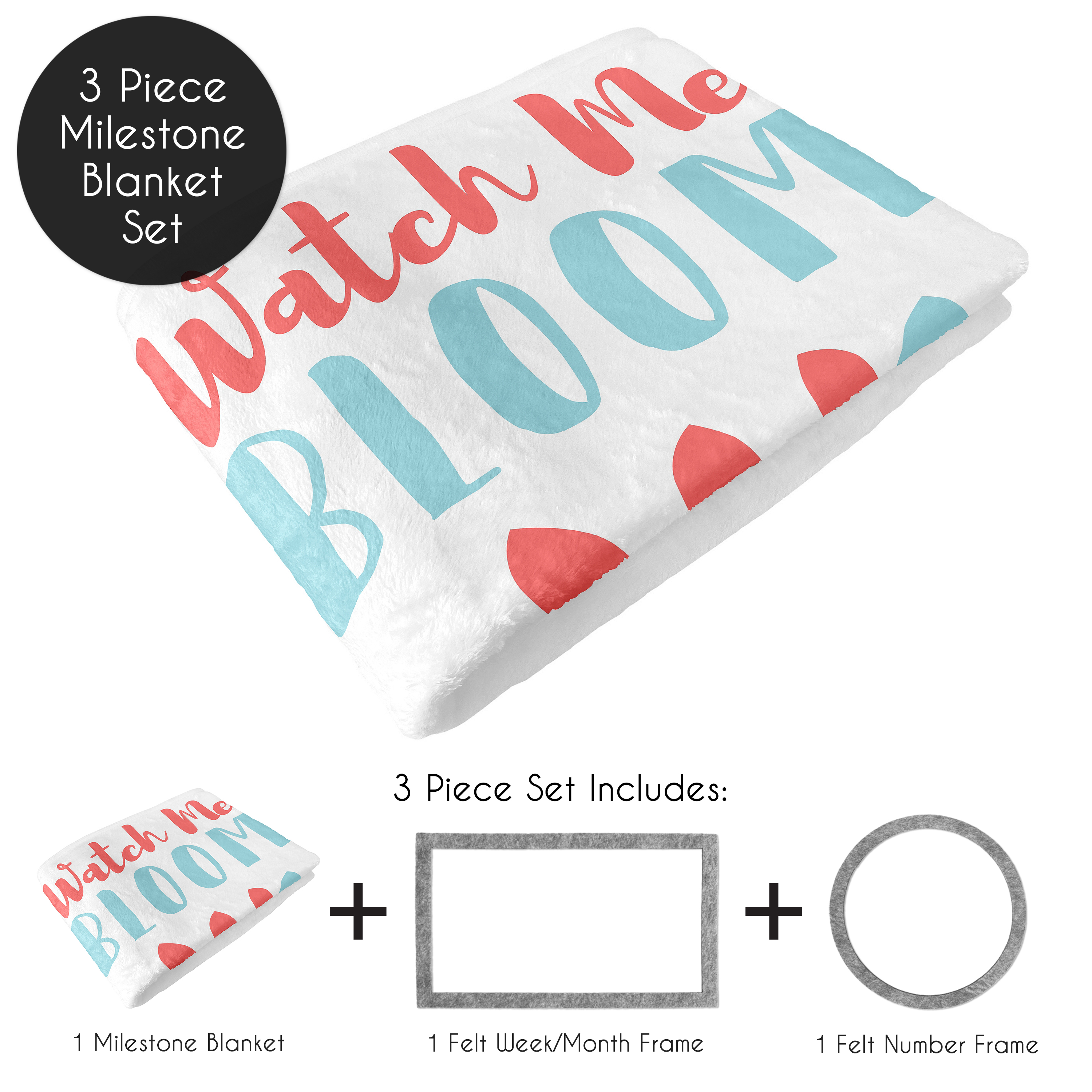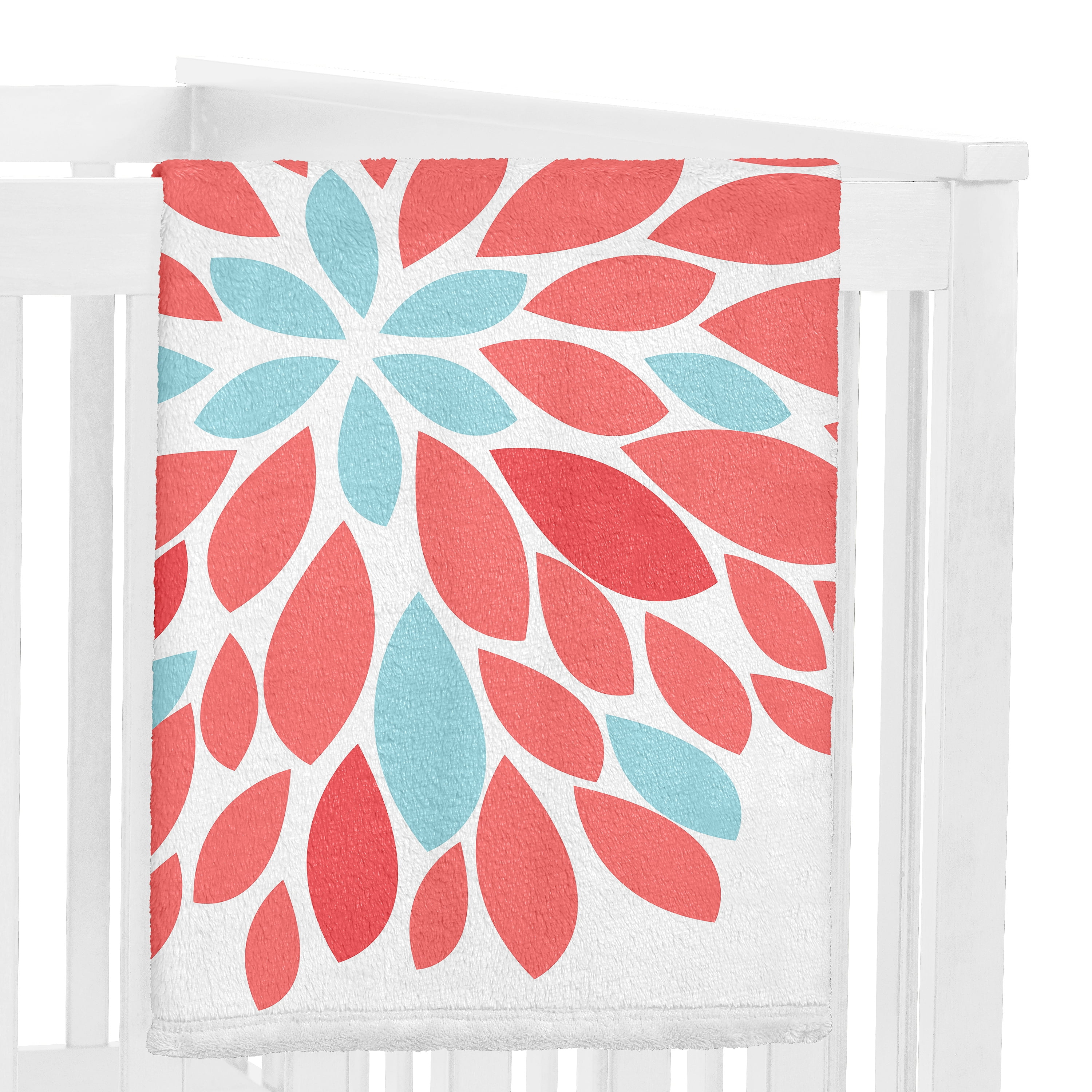 - 100% plush minky fleece featuring a coral pink and turquoise flower with an inspirational "Watch Me Bloom" quote.
