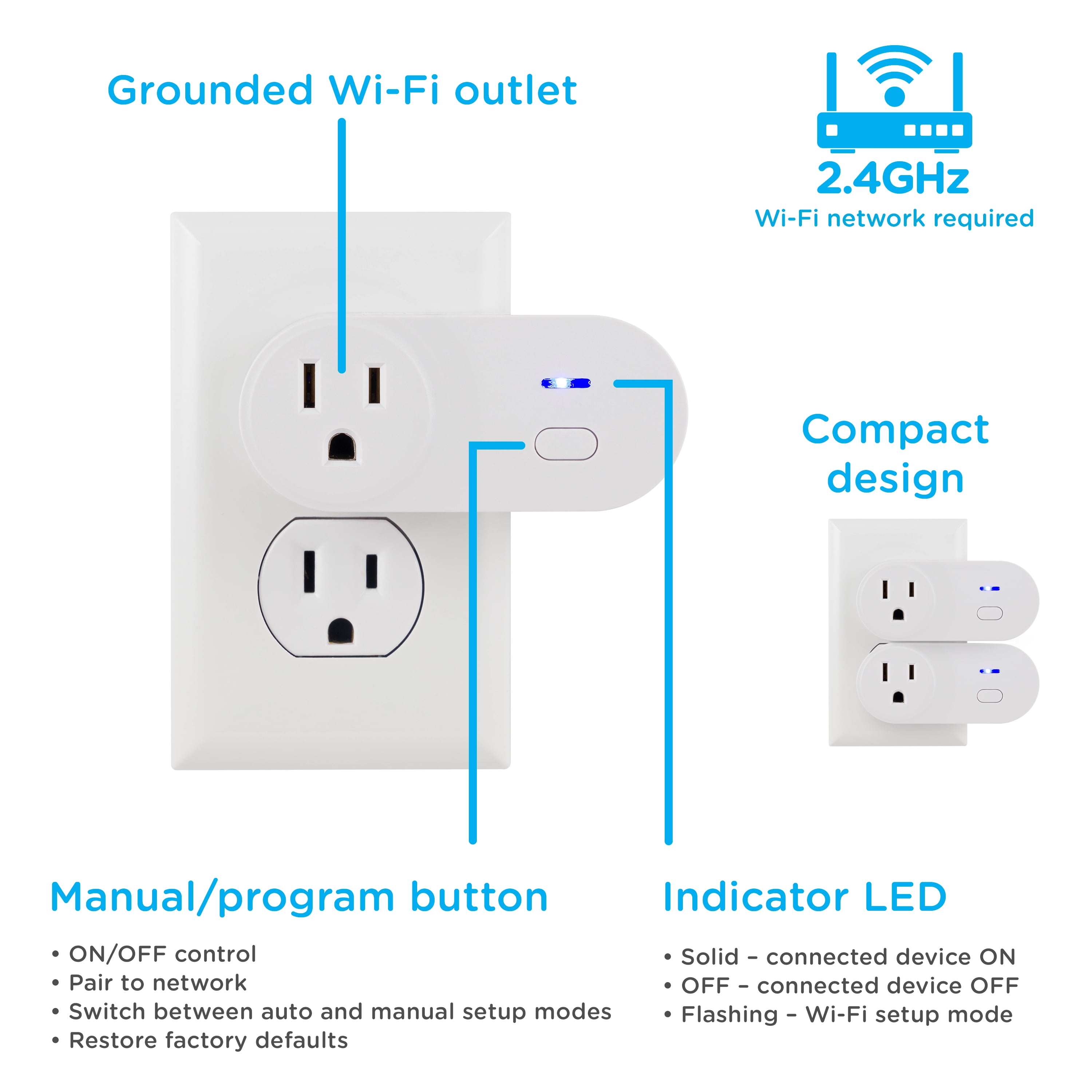 Enbrighten Plug-In Wi-Fi Smart Switch, Indoor, 1 Grounded Outlet, 51249, White