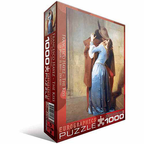 EurographicsPuzzles – The KissFrancesco Hayez’ The Kiss has been regarded as a symbol of Italian Romanticism. The painting represents a couple from the Middle Ages, embracing while they kiss each other. It is among the most passionate and intense representations of a kiss in the history of western art. The strong, high-quality puzzle pieces are made from recycled board and printed with vegetable based ink. This superior-quality puzzle will delight and educate all at the same time.