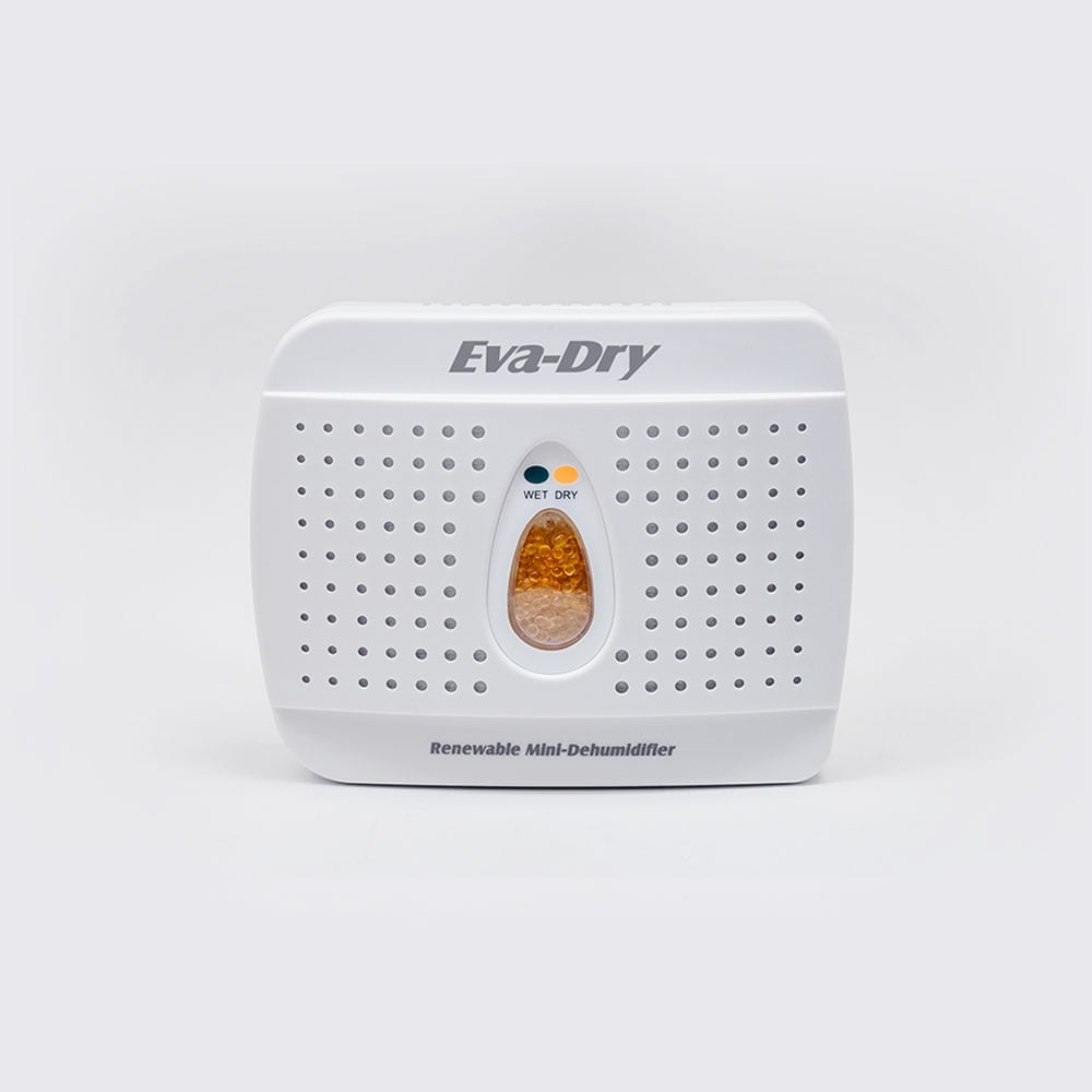 The Eva-Dry E-333 is a powerful Silica Gel based dehumidifier that is optimal for all of your small spaces up to 333 cubic feet, such as: purses, closets, cabinets, cars, boats, RVs, campers, bathrooms and even safes! Engineered with crystallized silica gel technology, the EVA DRY mini Dehumidifier will quickly and efficiently absorb up to 4 to 6 oz of moisture vapor from the air, without any leaks or spills. The device is 100% renewable, requires no batteries or cords for use, and works for up to 10 years! As the device absorbs the humidity, our moisture indicator beads will turn from orange to green, indicating that its time to renew the unit. To renew, simply plug the unit into a wall outlet in a well ventilated area for 10-12 hours and the internal heating element will gently warm the silica gel inside up and evaporate the collected moisture. This item has a 5 year warranty and can last for up to 10 years.