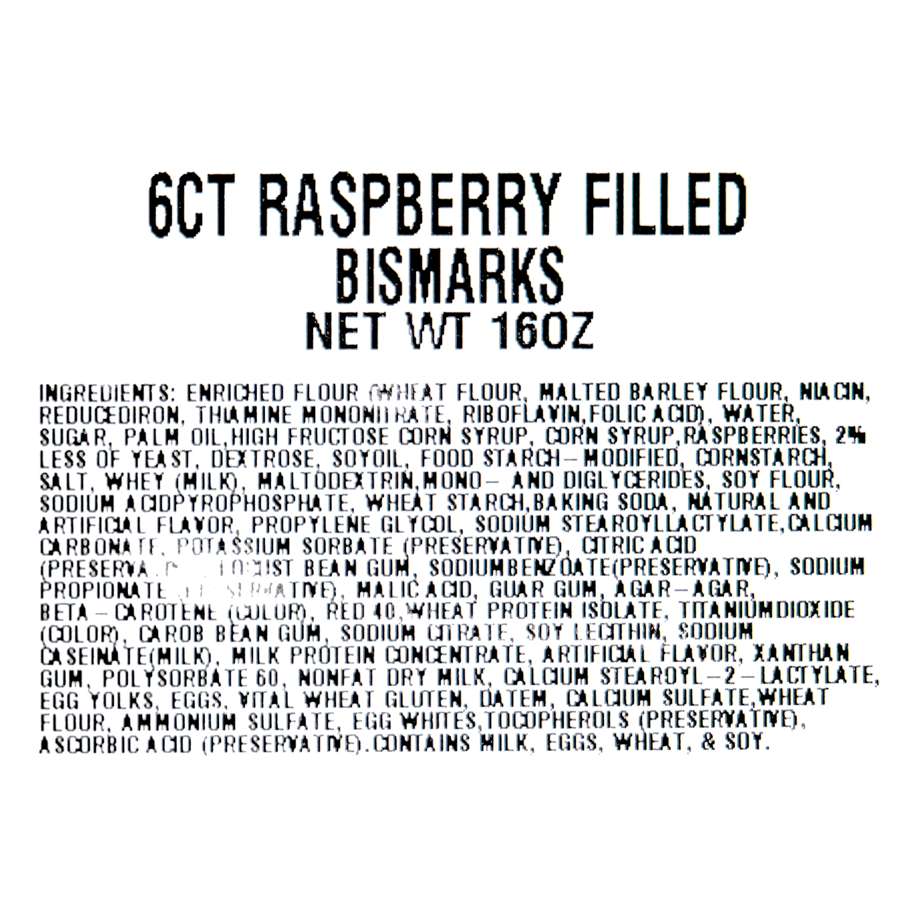 - Can contain a variety of either powdered sugar coated or glazed raspberry filled bismarks