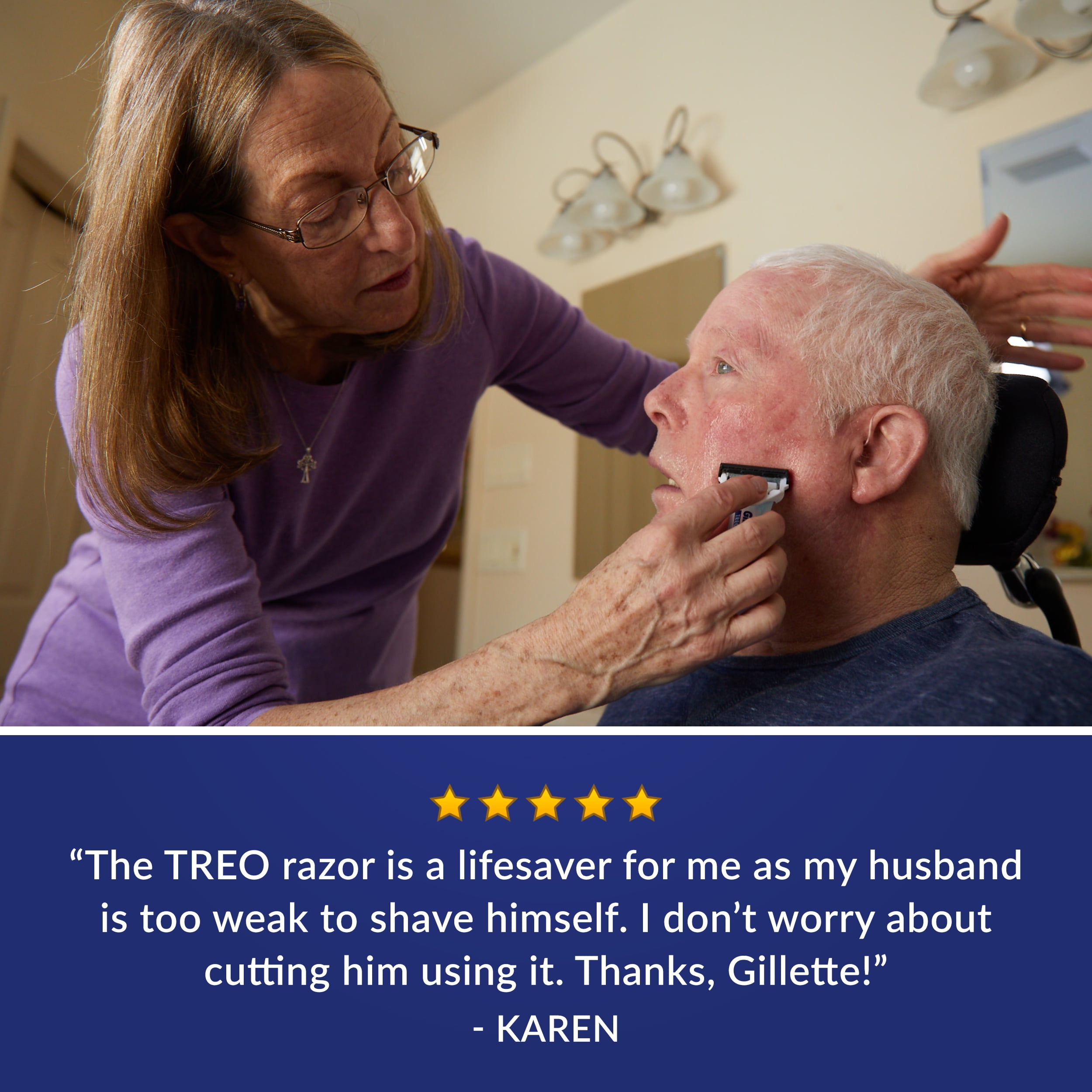 - Gillette TREO is the first of its kind razor designed specifically with the caregiver’s needs in mind