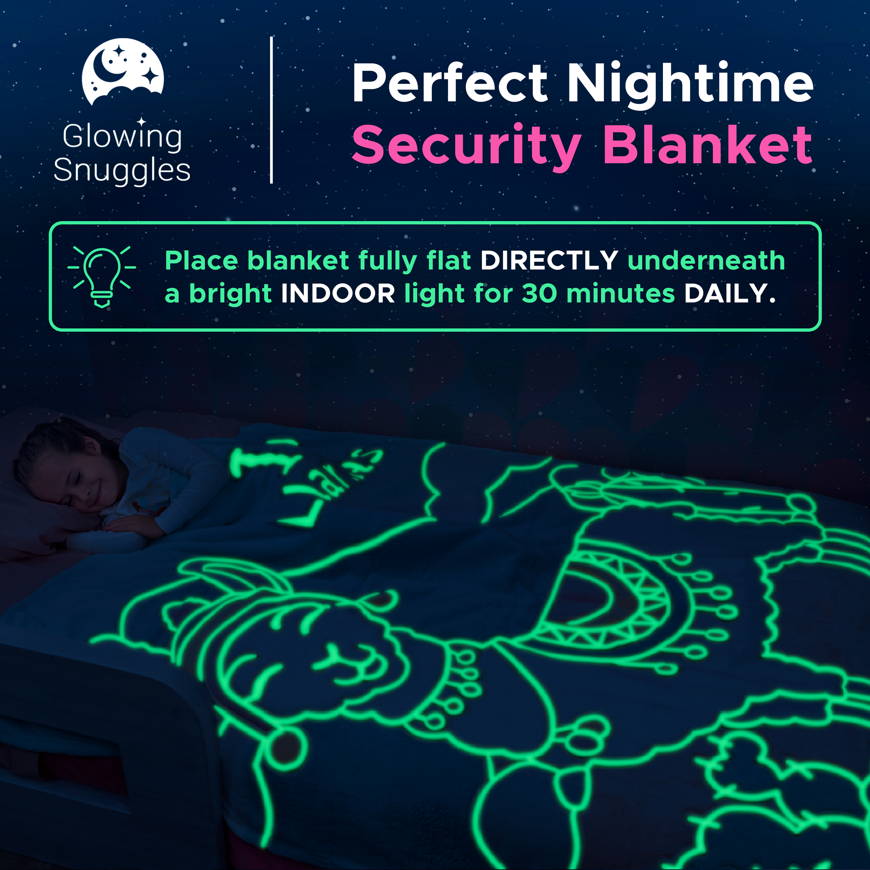 Glowing Snuggles Glow in the Dark Llama Alpaca Blanket (Copyrighted Protected Design- Patent Pending)