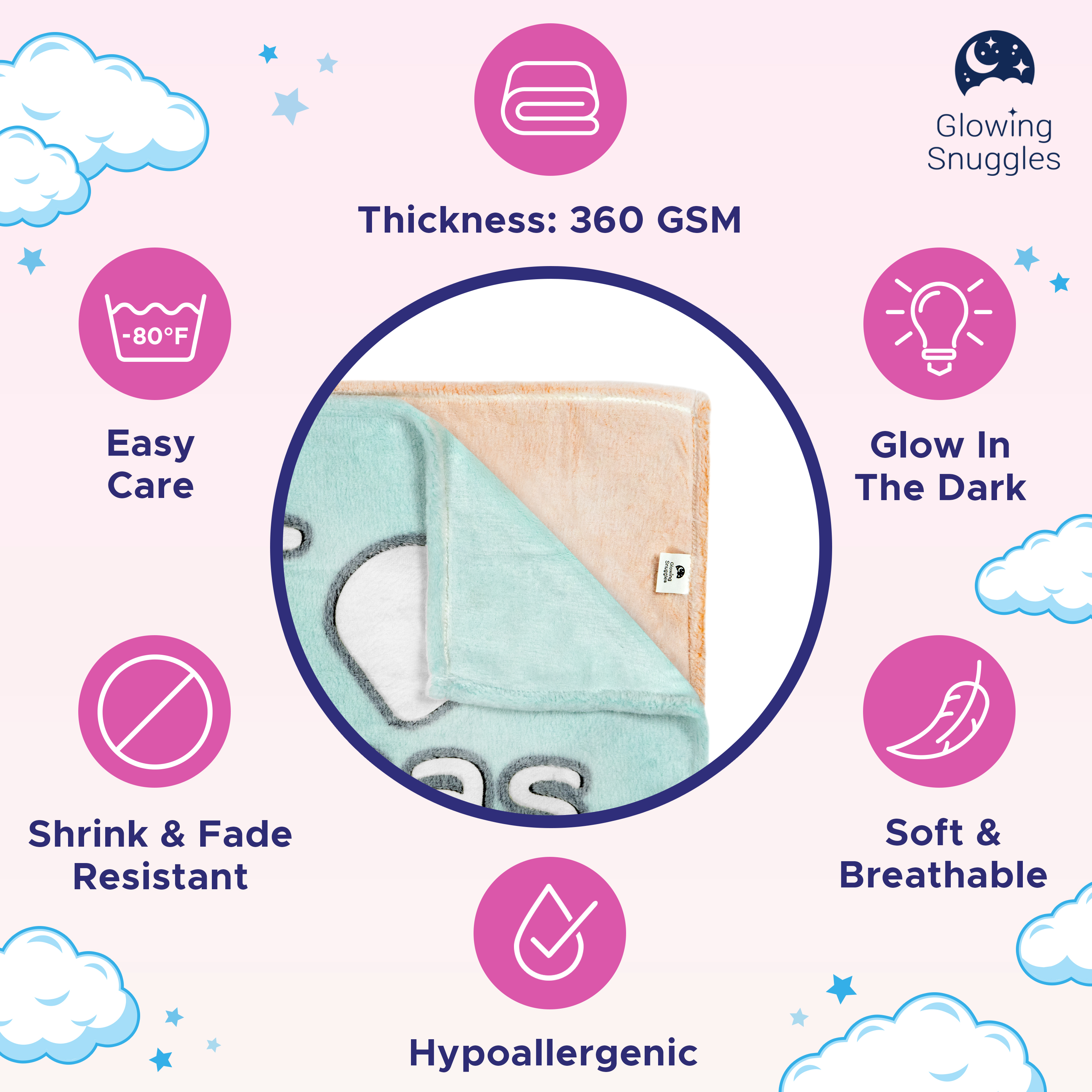 A LA LA LLAMA LOVE!! – The cutest glow in the dark girls blanket on the planet! Our kids throw blanket makes the perfect gift for any occasion and can be used summer, spring or fall since it is the perfect thickness. Why buy a cheap throw that can only be washed a few times before it is wore out? With Glowing Snuggles, you get a 360 GSM blanket that is durable, long-lasting, and can be washed hundreds of times, unlike cheaper blankets! Better yet, you get 8+ hours of glow! Give the gift that keeps on giving with this ultra-soft, plush, llama alpaca blanket made for kids to reduce nighttime anxiety, be a sensory object, travel friendly, and be a child’s best buddy! We offer 6 available unique designs, which makes the perfect gift for any occasion and with 8+ hours of glow time, our throws are sure to bring a smile to any child’s face. .Glow in the Dark