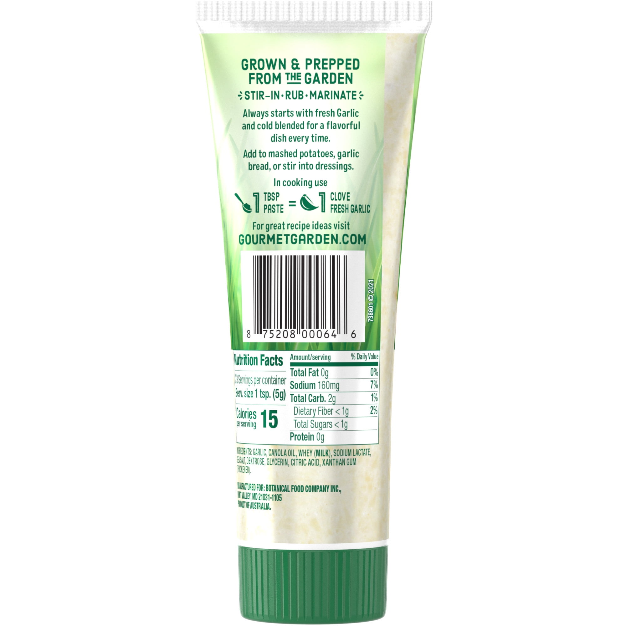 Give everyday meals the bold flavor they deserve with Gourmet Garden Garlic Stir-In Paste. No prep needed – it’s so easy to add a squeeze of our convenient garlic paste to any savory recipe. In each squeezable tube is garlic that’s been peeled and finely chopped to deliver its signature punch. Our garlic paste is at its best flavor, color and aroma when it reaches your family’s table. Use it at the beginning of cooking to create a sweet, garlicky base. Add it at the end – traditionally garlic bread, marinades and sauces – for a deeper, more pungent flavor. Use 1 teaspoon of paste in place of 1 medium garlic clove. Store refrigerated for weeks after opening.