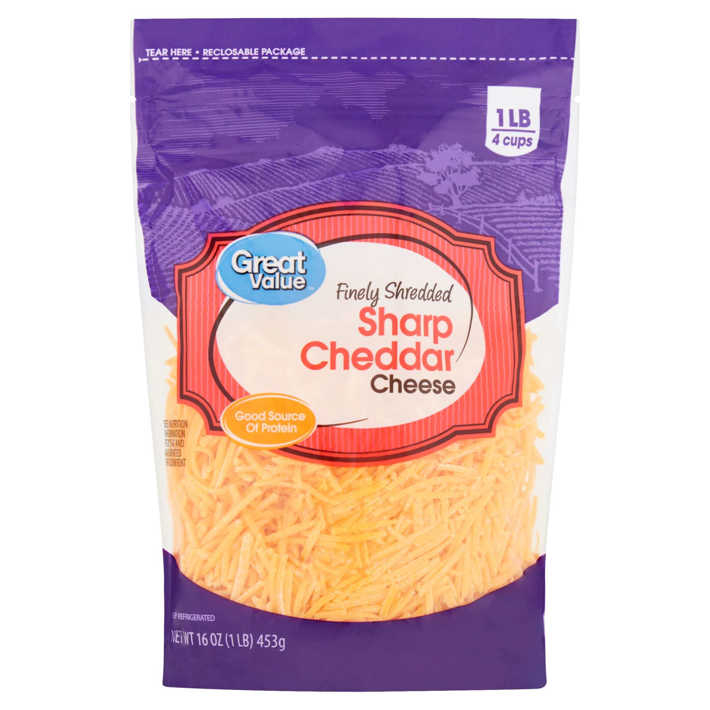 Great Value Finely Shredded Sharp Cheddar Cheese, 16 oz