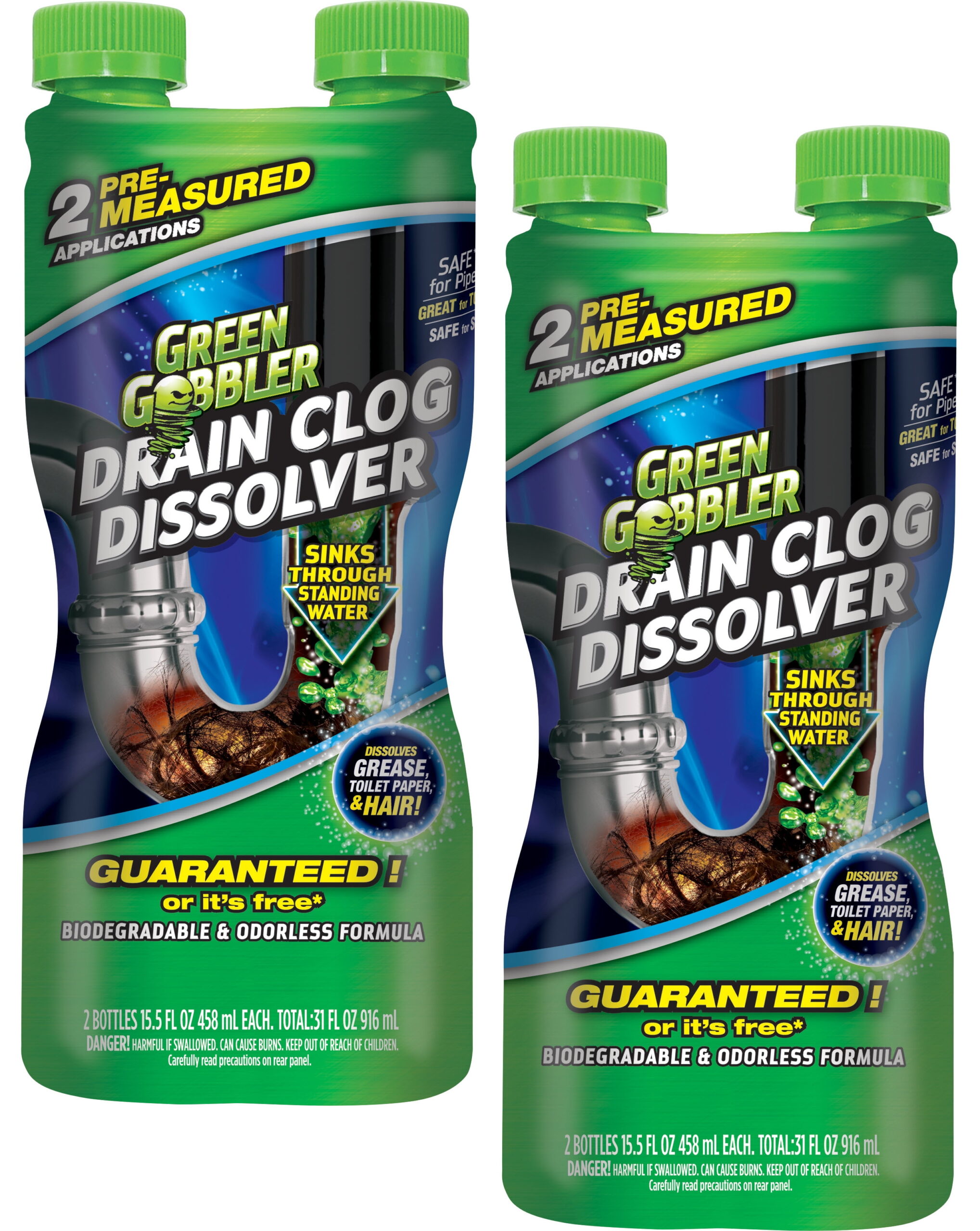 Green Gobbler Drain Clog Remover, Unscented, 15.5 Fluid Ounce, 2 Count, 2 Pack