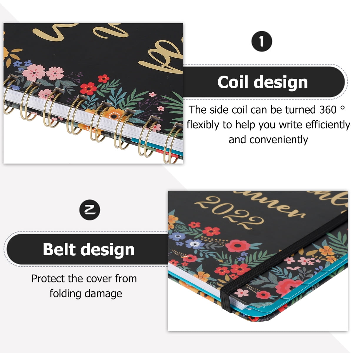 - 2022 Agenda:Measures 21.5 x 15.5 x 1.2cm/8.5 x 6.1 x 0.5in, the 2022 diary provides a 365-day recording service. It adopts a durable and sturdy two-wire design, and the side coil can be flipped 360° flexibly to help you efficiently Write easily.