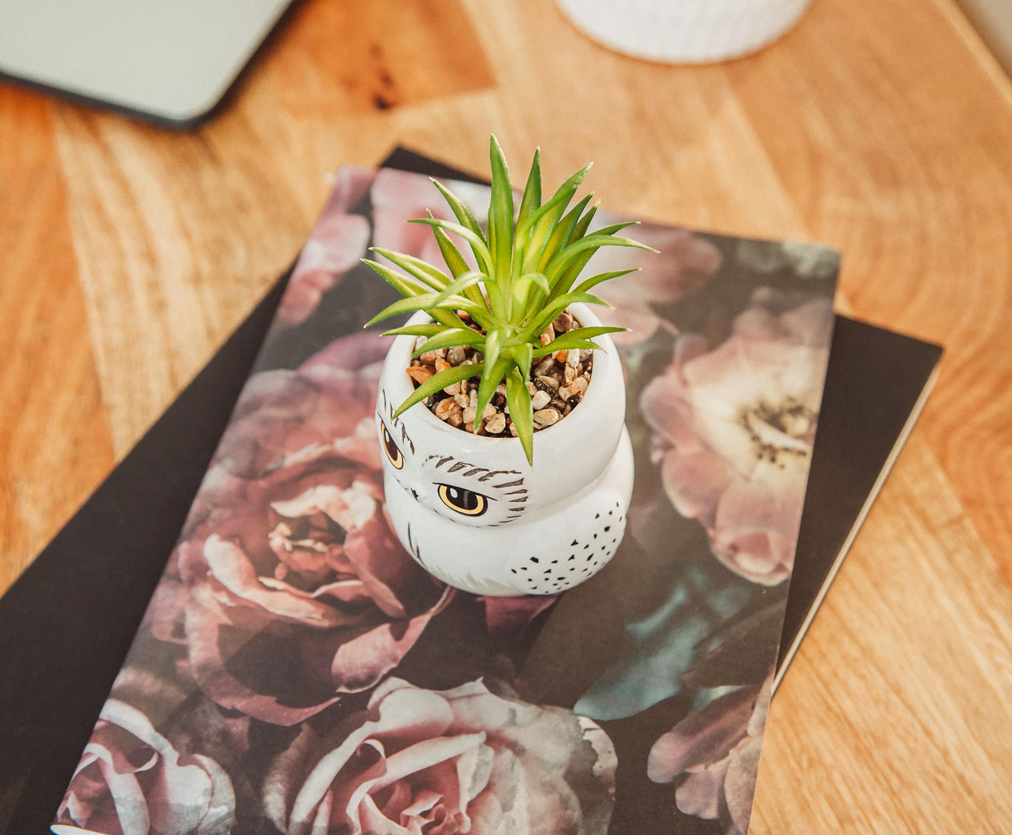 - Enchanting Design For Wizards: This sculpted 3D planter pot looks just like Hedwig, with an artificial succulent plant sprouting from the top. Modeled after the iconic messenger owl from Harry Potter.