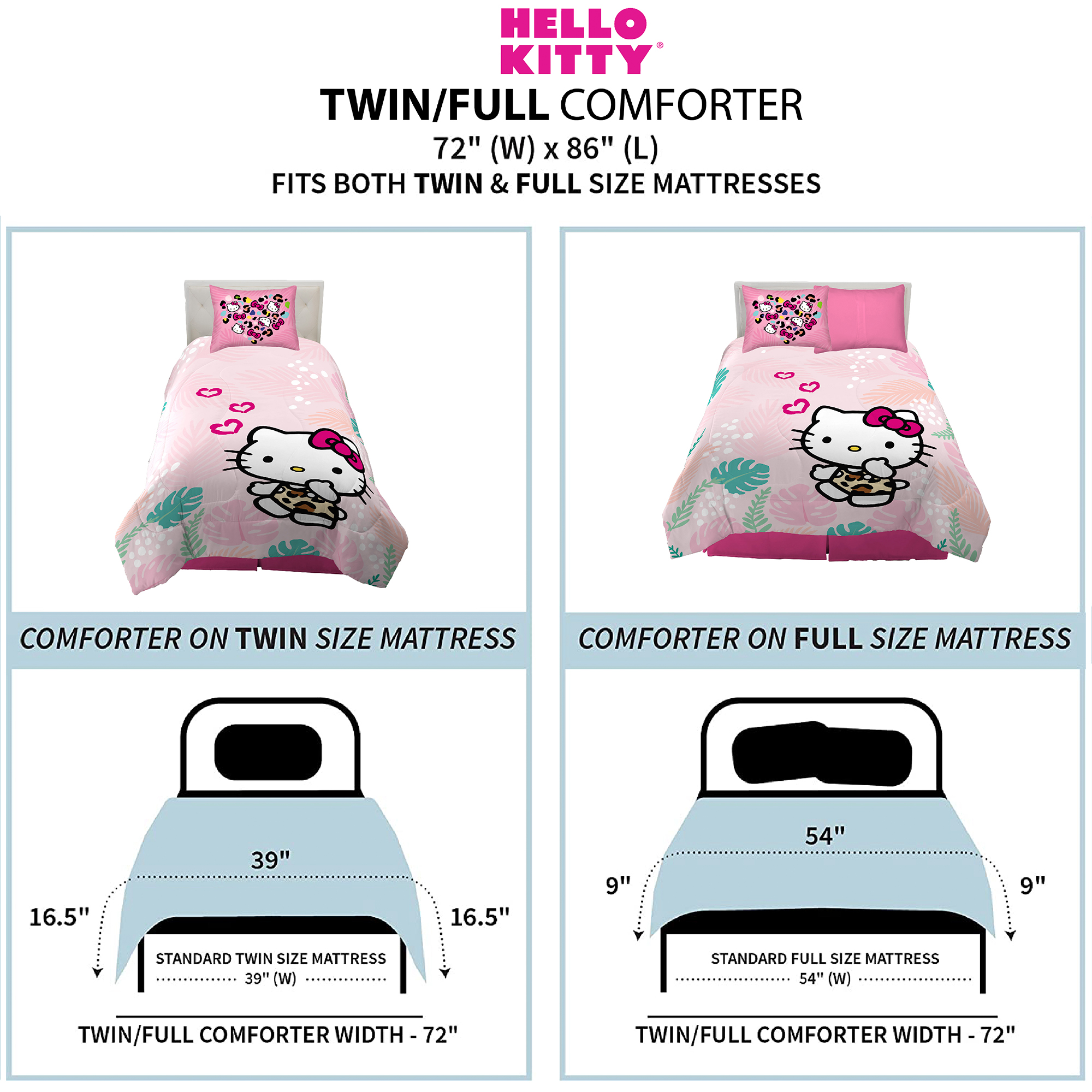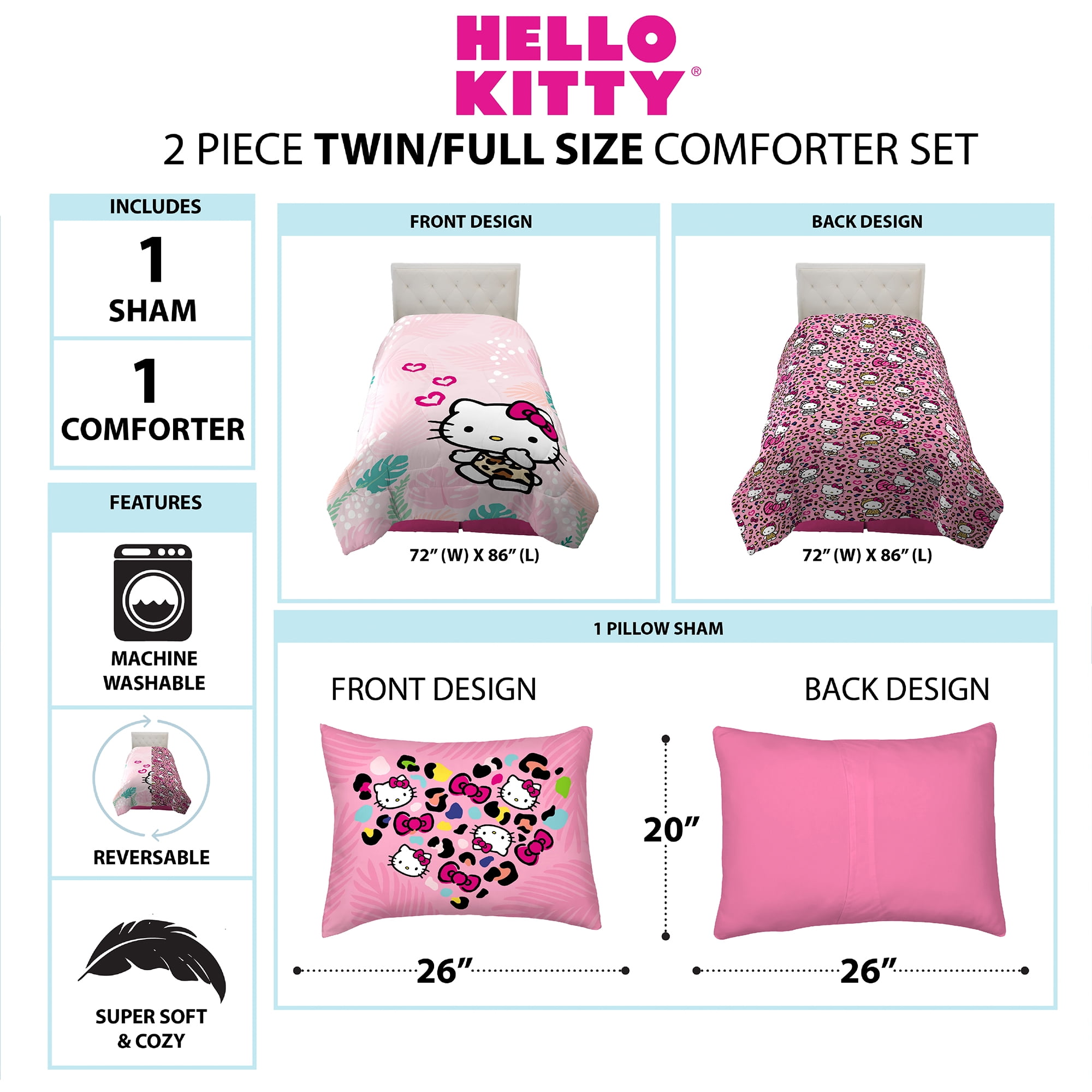 Hello Kitty Kids Comforter and Sham, 2-Piece Set, Twin/Full, Reversible, Pink, Sanrio