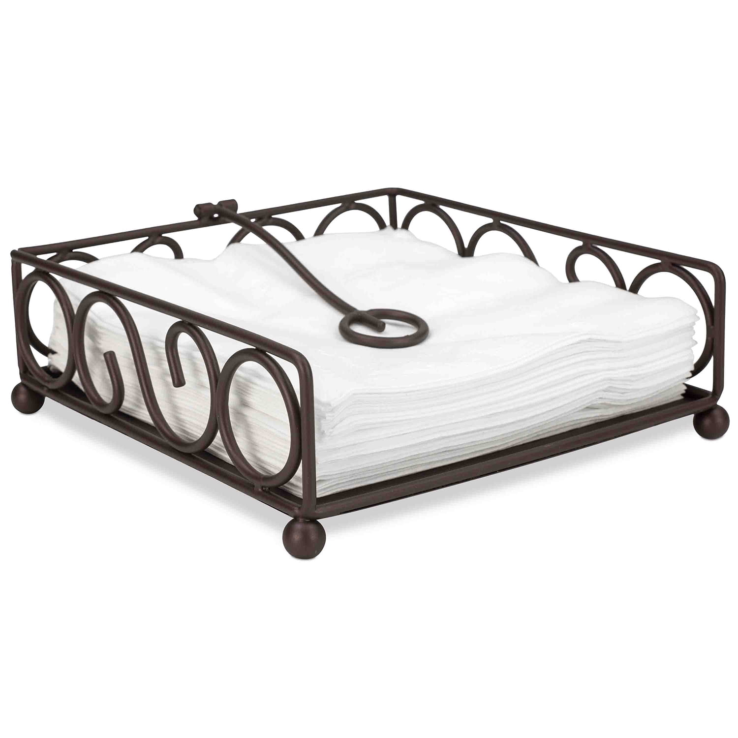 Keep napkins neat and close at hand with this napkin holder. Made from heavy weight chrome coated steel. Rust resistant. Beautiful and simple scroll design is perfect for any kitchen.Keep napkins neat and close at hand with this napkin holder. Made from heavy weight chrome coated steel. Rust resistant. Beautiful and simple scroll design is perfect for any kitchen.