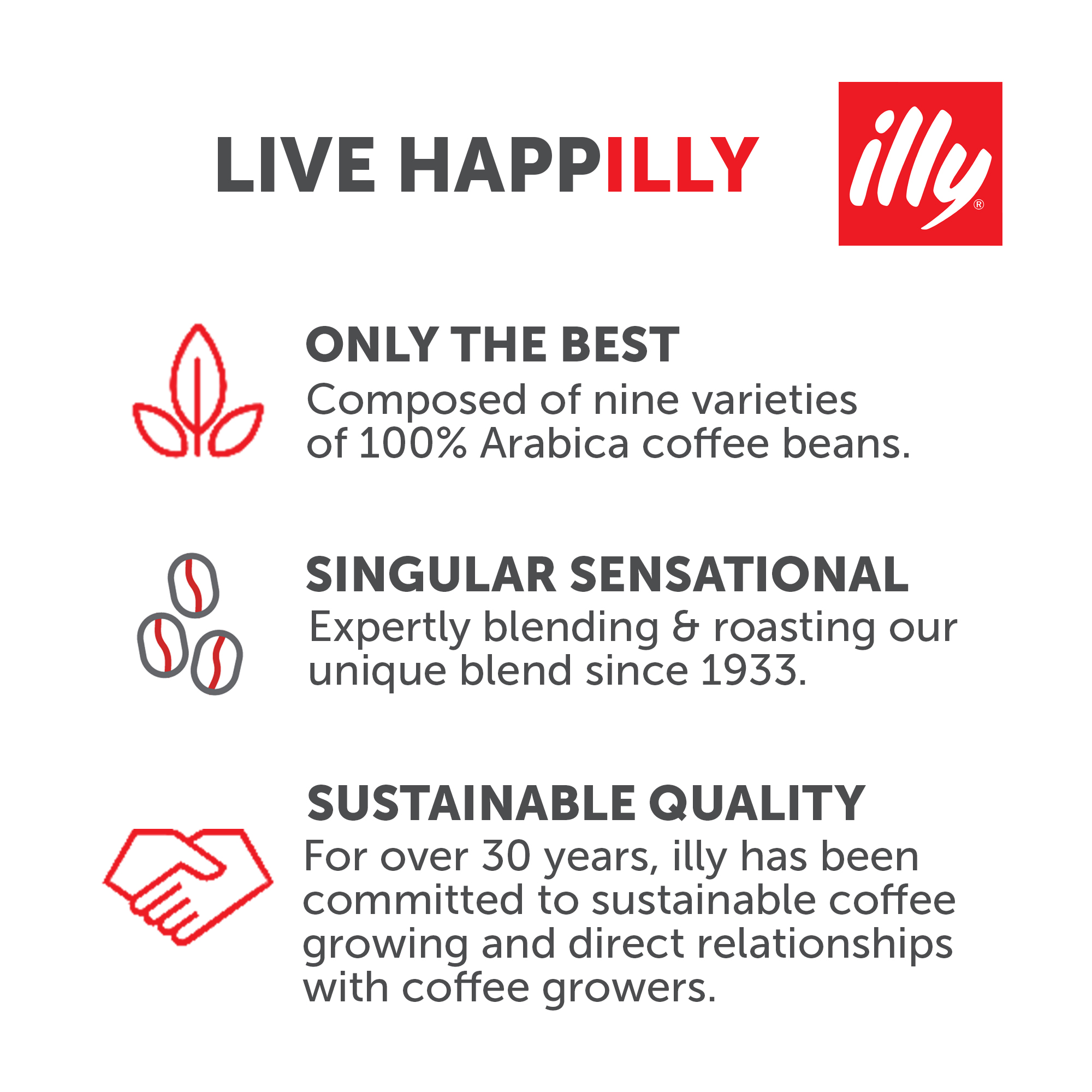 - Carefully selected and meticulously roasted, illy coffee beans invoke a sensual beauty and poetry in the passionate coffee lover.