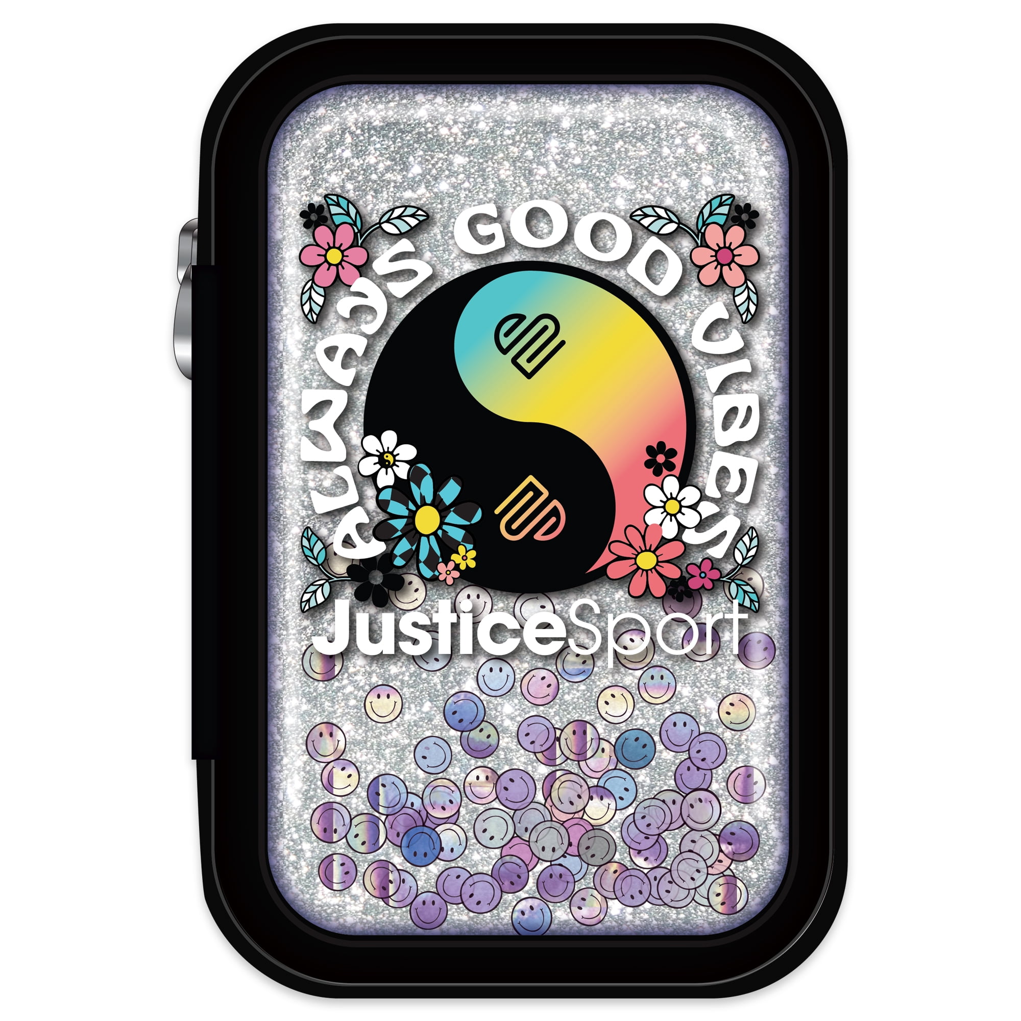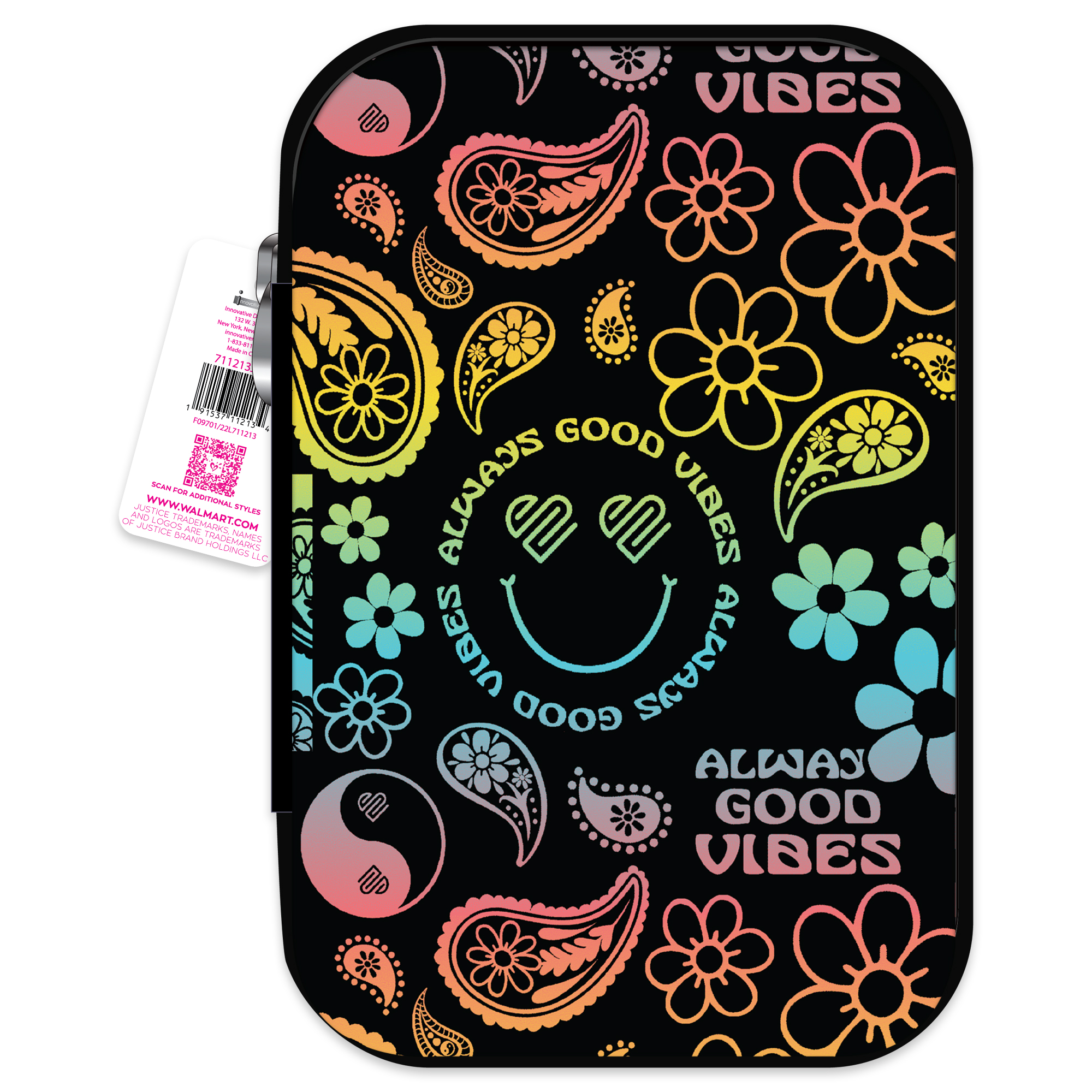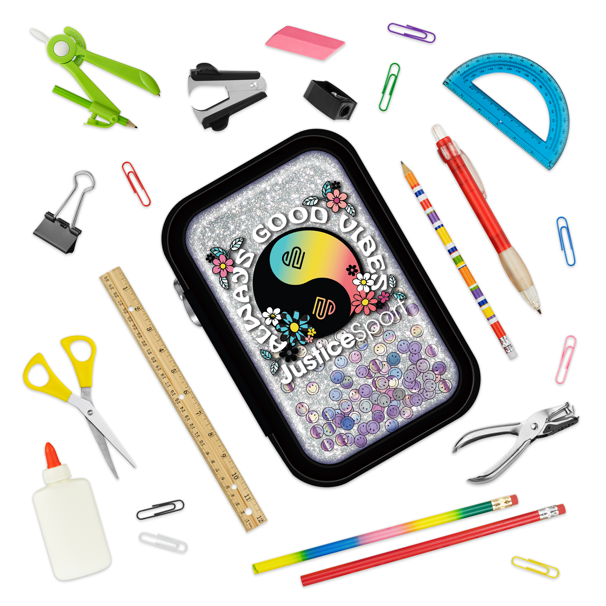 Justice Groovy Vibes Pencil Case with Silver Glitter and Confetti Accents