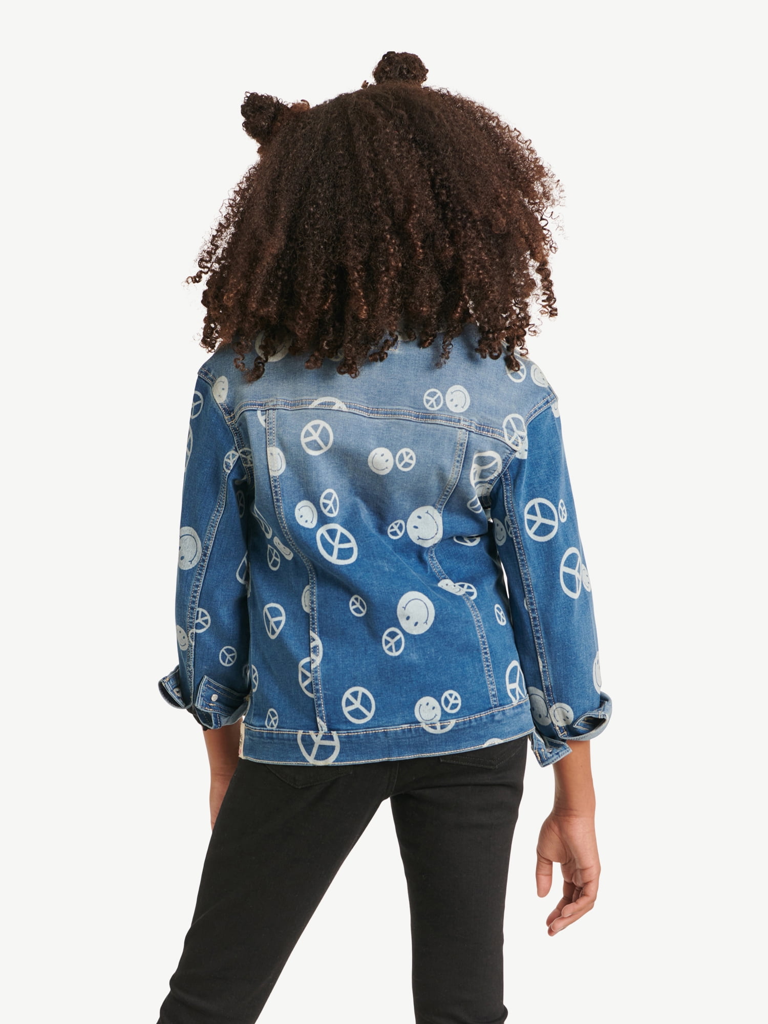 Get ready to take on the Upside Down this season with the Justice x Stranger Things Girls Discharged Denim Jacket. This stellar jacket features an all-over peace and smiley print in super cool denim- making this the perfect jacket to hang out at the skating rink with your friends or take on a Demogorgon! Pair it with the coordinating Mini Mom jeans for a totally wicked look.