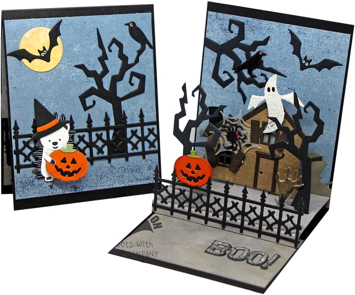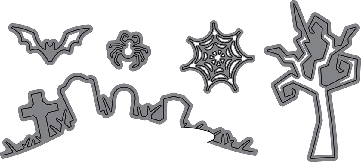 These wafer-thin metal crafting dies are compatible with most major die cutting machines. Packed with value, these innovative, cutting edge die sets will take your paper crafting to new heights. This package contains Halloween Scene: a set of five dies measuring between 1x.875 inches and 5.5×1.75 inches. WARNING: Choking Hazard. Not suitable for children under 3 years. Imported.Karen Burniston Dies-Halloween Scene