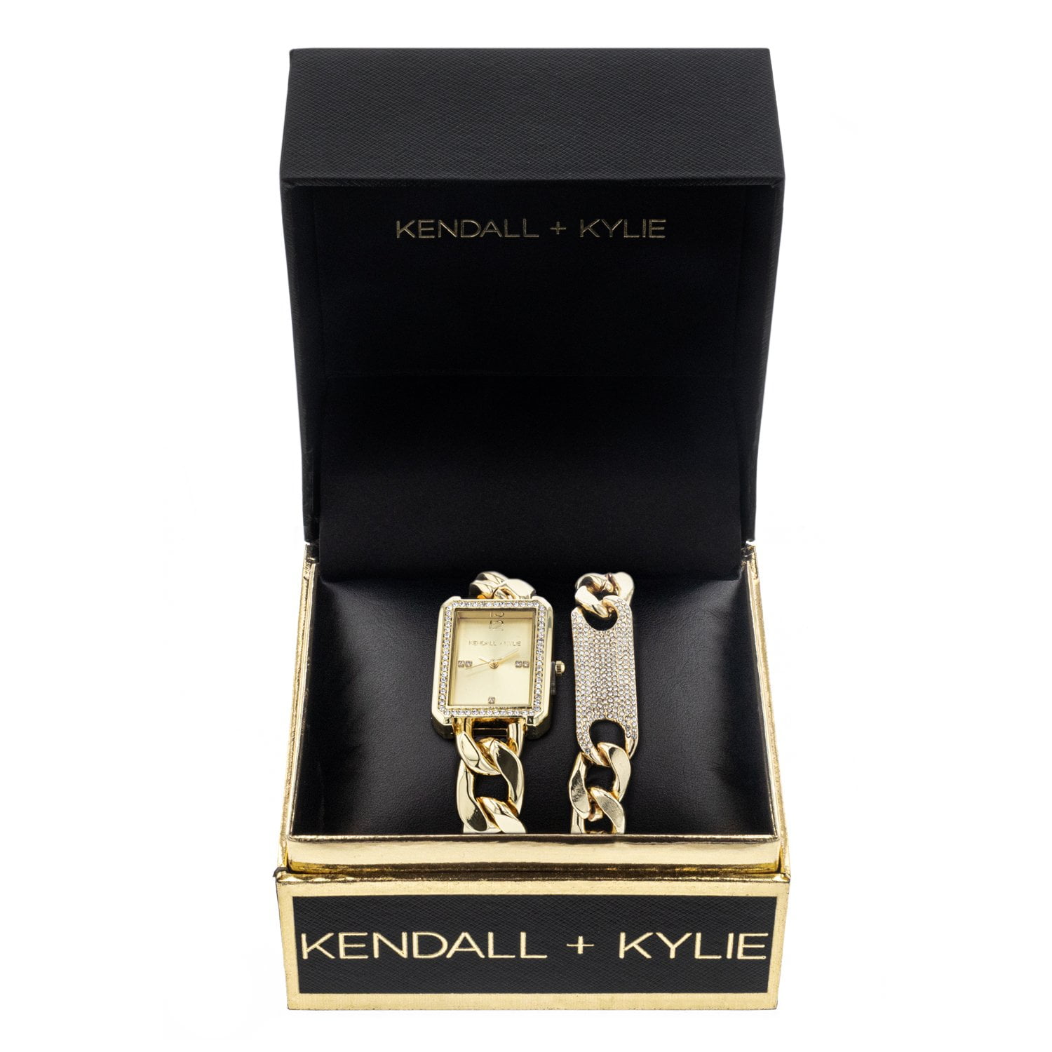 Kendall + Kylie Watch: Women’s Chunky Chain with Rectangle Face and Matching Bracelet Set