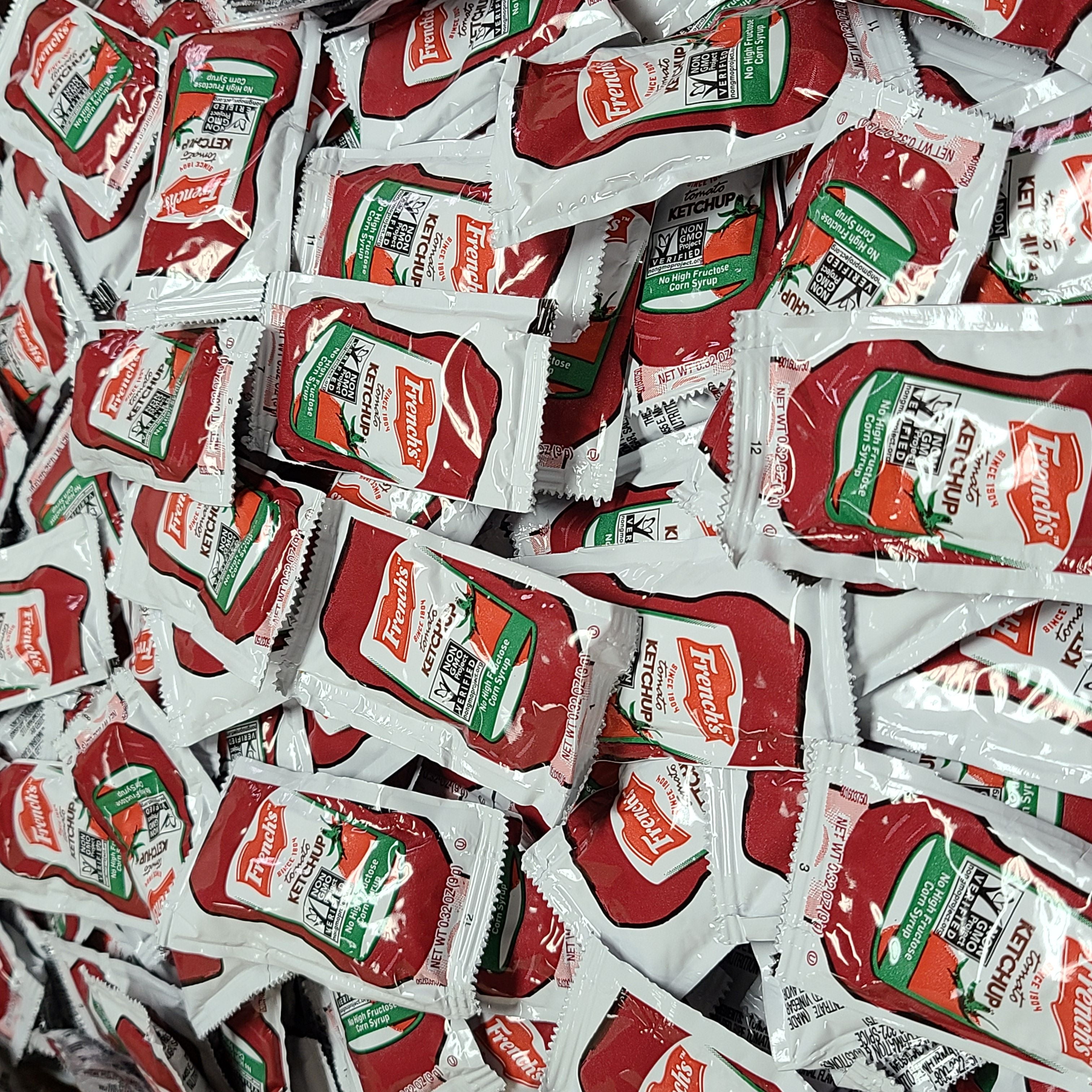 - French’s tomato ketchup packets – Made with fresh, ripe tomatoes, sugar, onion powder, and a variety of spices and herbs, the sweet signature taste of French’s Ketchup makes it the ideal condiment for tailgates, barbecues, kitchen table dinners and more. Squeeze on all your favorite dishes – from hot dogs to burgers to french fries.