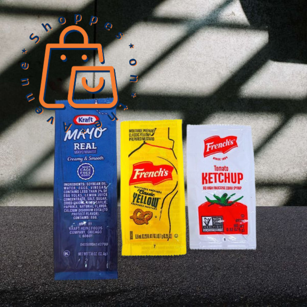French’s tomato ketchup packets – Made with fresh, ripe tomatoes, sugar, onion powder, and a variety of spices and herbs, the sweet signature taste of French’s Ketchup makes it the ideal condiment for tailgates, barbecues, kitchen table dinners and more. Squeeze on all your favorite dishes – from hot dogs to burgers to french fries. French’s classic yellow mustard packets – French’s Classic Yellow Mustard is made with stone ground, #1 Grade Mustard Seeds and has no artificial colors, flavors or preservatives. No corners cut, no weird stuff, just classic mustard sauce that brings food to life with zero fat, calories or gluten. Crafted by our master grinders, our stone ground yellow mustard delivers the smooth texture and tangy taste your family will love. Kraft Real mayonnaise packets – pairs well with fries, hamburgers, chicken sandwiches and all of your summer grilling favorites. You’ll feel great about using our mayo at your Fourth of July and Labor Day BBQs. Kraft Real Mayo is made with quality ingredients