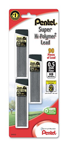 Value Pack of 6 Pentel Super Hi-Polymer Lead Refills, 0.5 mm, 540 Pieces (C25BPHB3-K6)