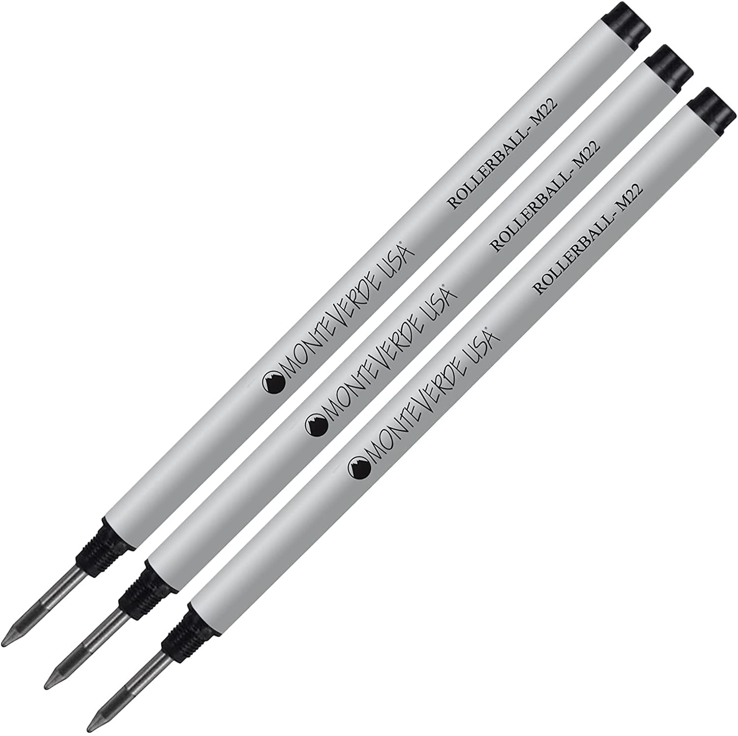 - 3 Pack – Monteverde® Rollerball M22 Paste Ink Refill Compatible with most Montblanc® Style Rollerball Pens – Black (Fine Tip 0.6mm)