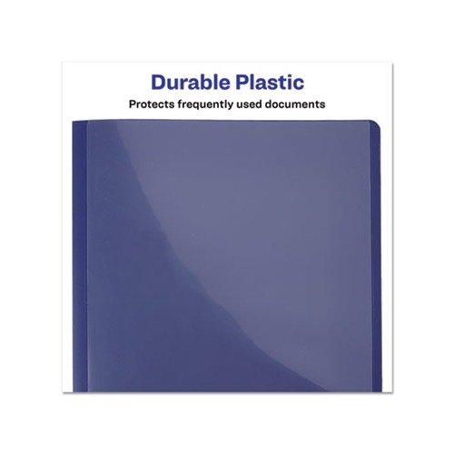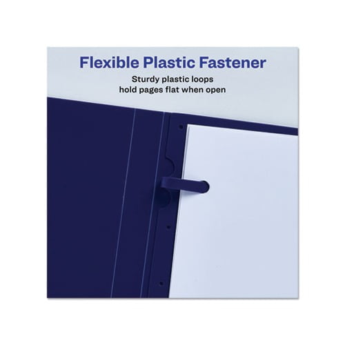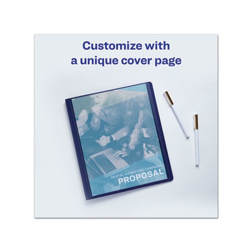 Create an easy-to-read presentation with Avery Lay Flat Report Cover. For easy viewing, each report cover features three sturdy, yet flexible plastic loops designed to hold the pages flat when open. Create a memorable first-impression as the report cover features a view window designed to hold your customizable title page. Whether your documents are for school, home, or work, use the predesigned binder templates and designs at avery.com to create a report cover page. Use the versatile report cover folders to create a school book report, a financial planner, a business proposal folder, and more. The reusable plastic report cover allows you to remove the old pages and replace them with new sheets. Keep your report clean and presentable as the non-stick, poly material won’t lift or transfer any print from your documents. The report cover with fasteners can hold up to 50 sheets of 8.5" x 11" paper. Front Cover Colors: Clear Color Family: Clear Back Cover Colors: Blue Sheet Size: 8.5 x 11.
