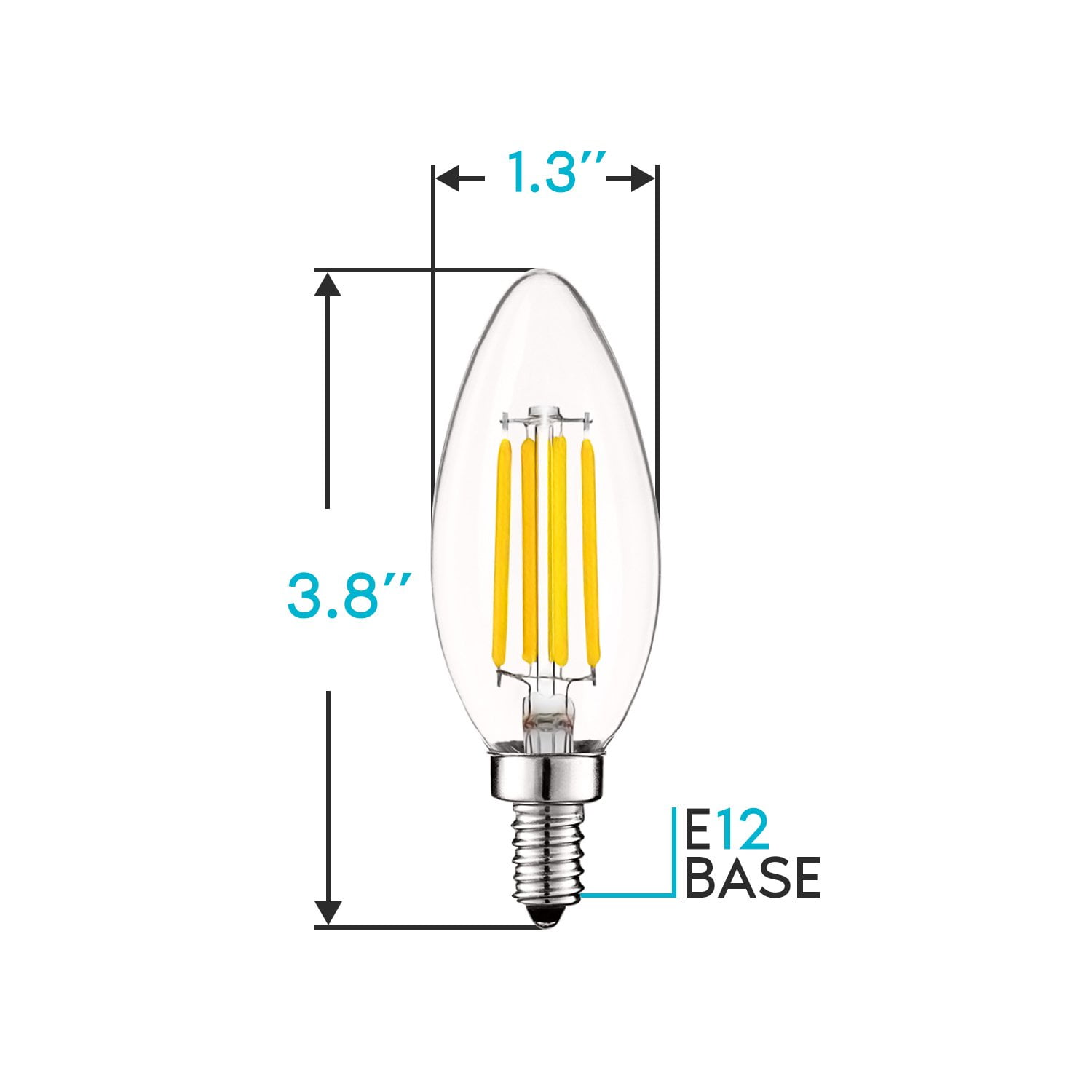- DIMMABLE – Control the brightness of your chandelier light bulbs with the ability to reduce from 100-10% lighting output. Set your candelabra base LED light bulbs according to your mood and take delight in a pleasant atmosphere every time.