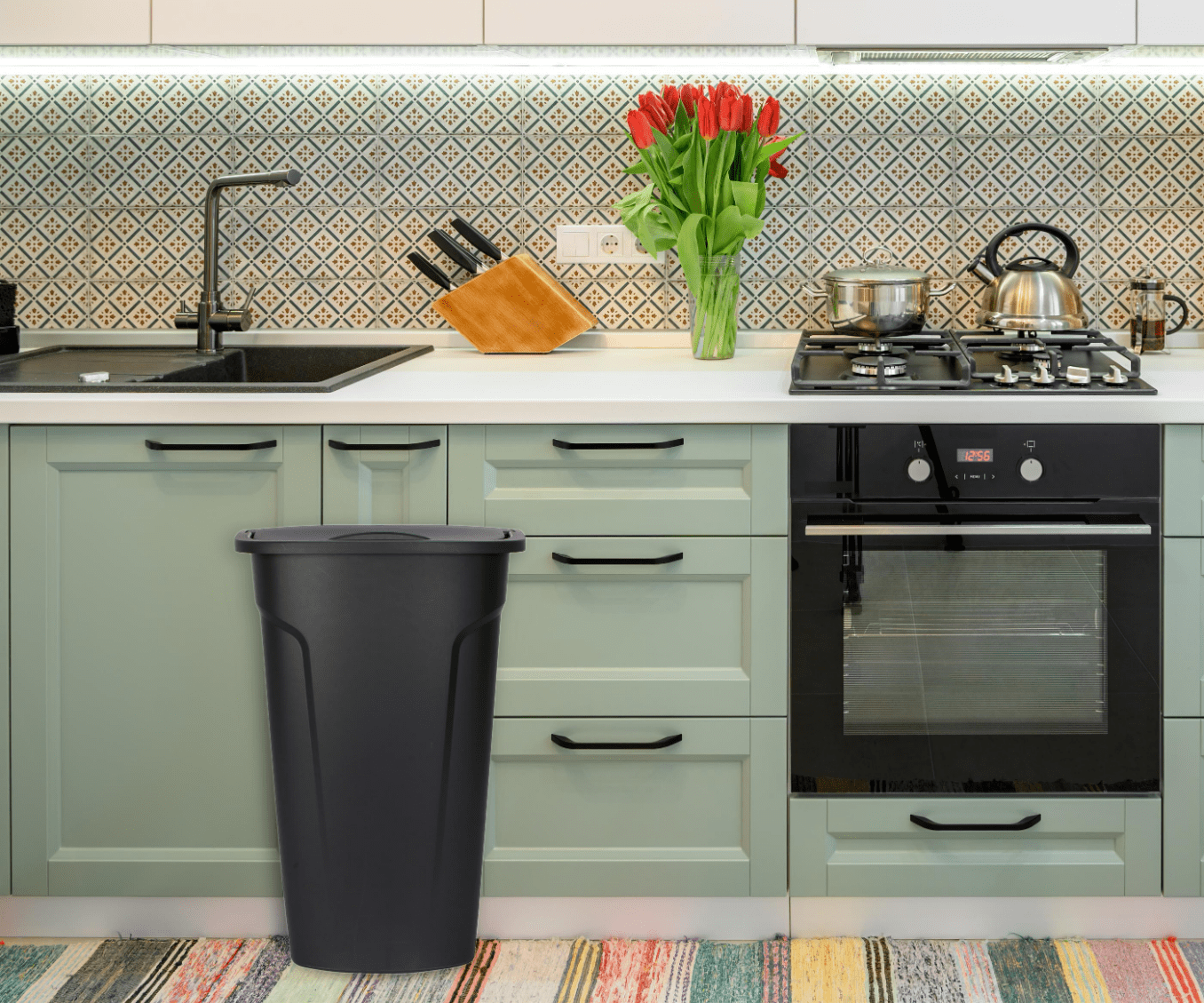 - Accommodates 13-gallon trash bag