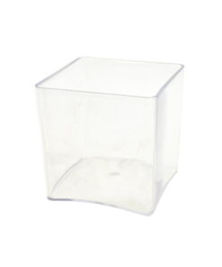 - Made of clear plastic with a removable electroplated plastic knobbed lid in shiny chrome