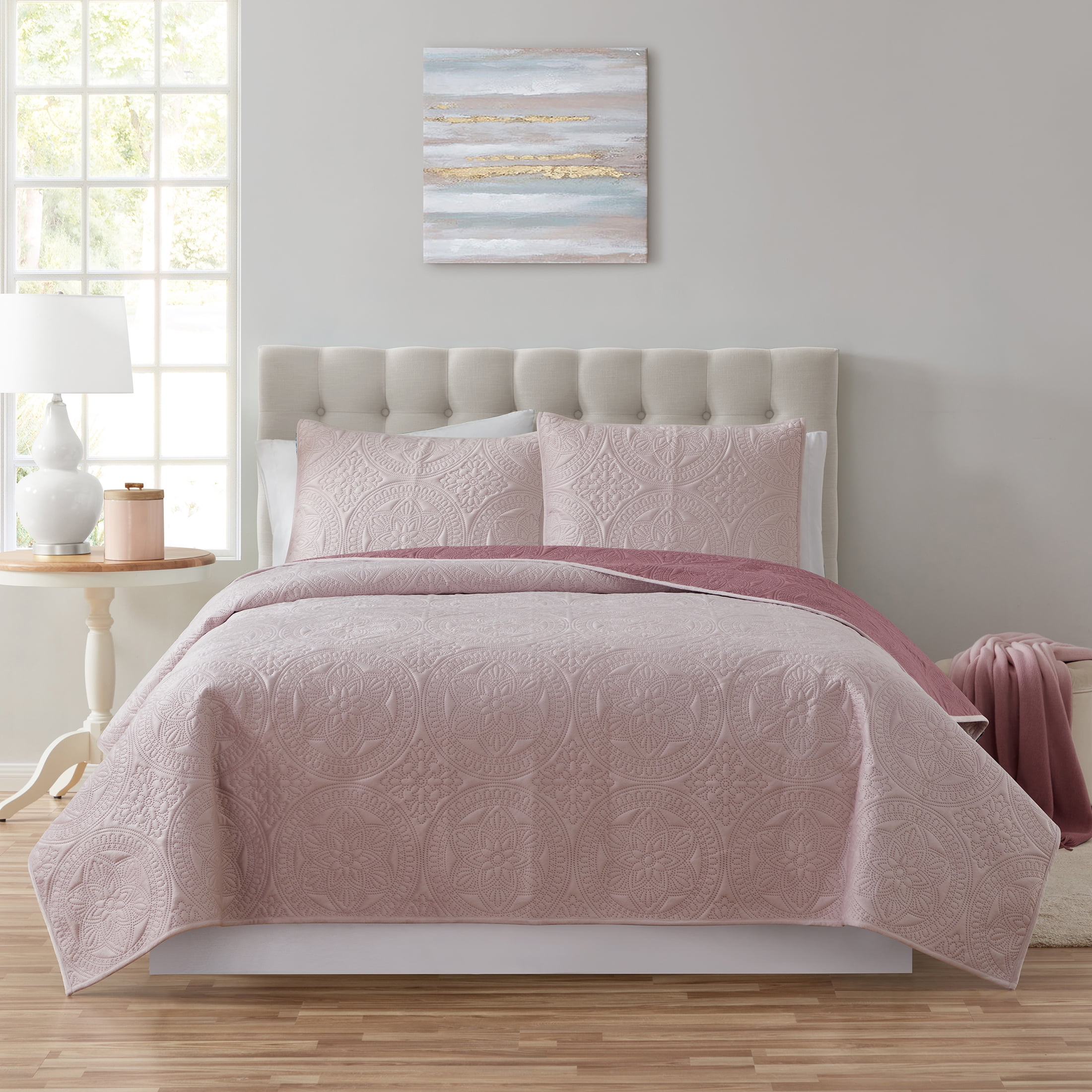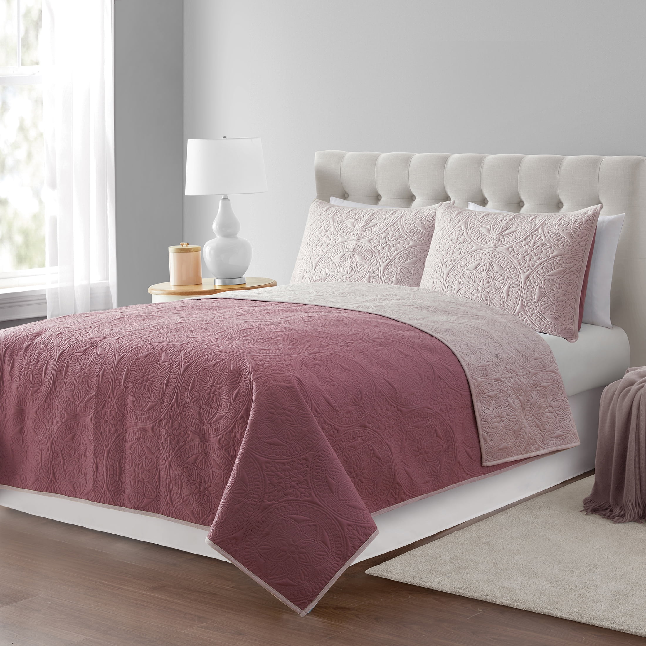 Mainstays Lilac Mink Medallion Reversible Quilt, Full/Queen