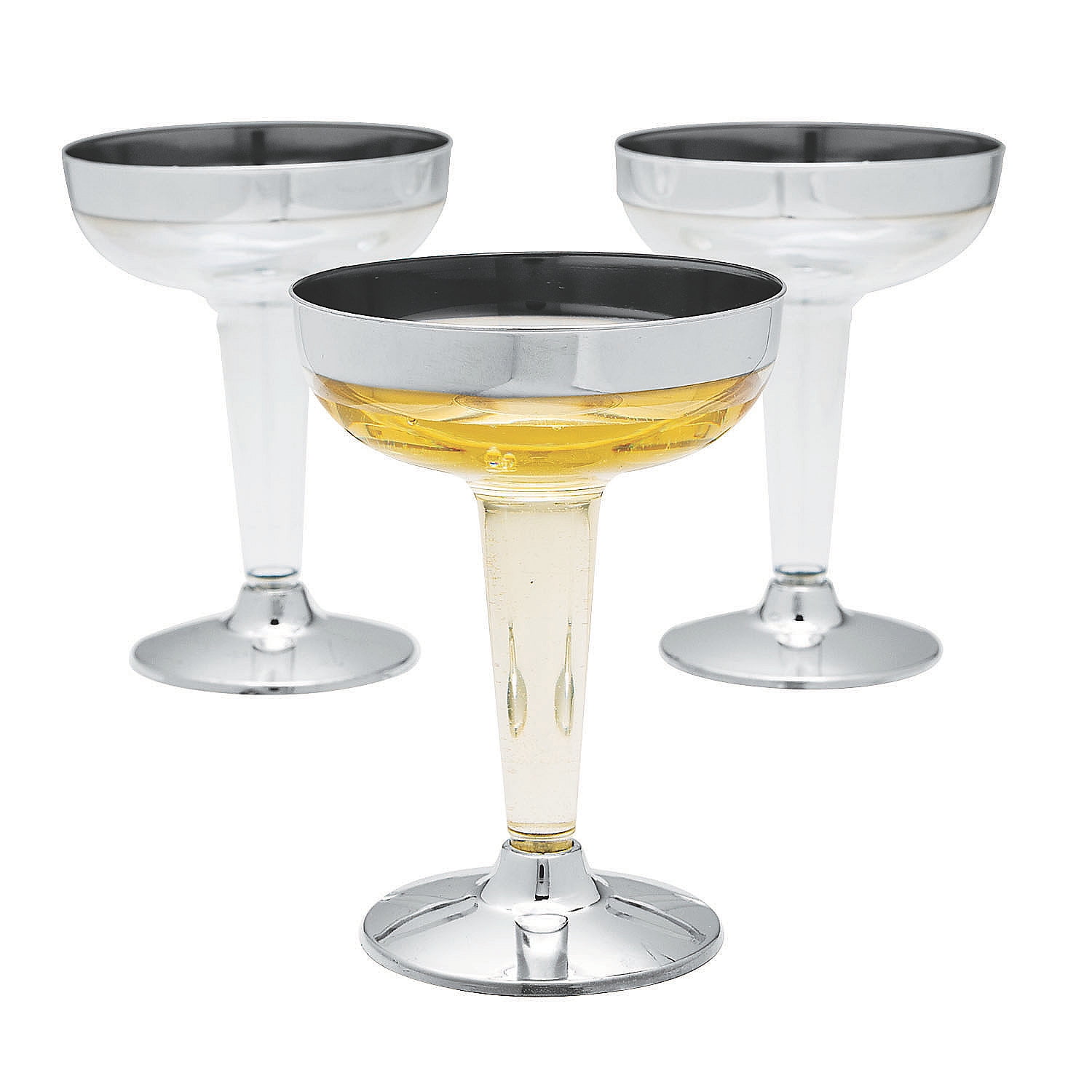 Mini Silver Champagne Coupe Glasses – Party Supplies – 25 Pieces