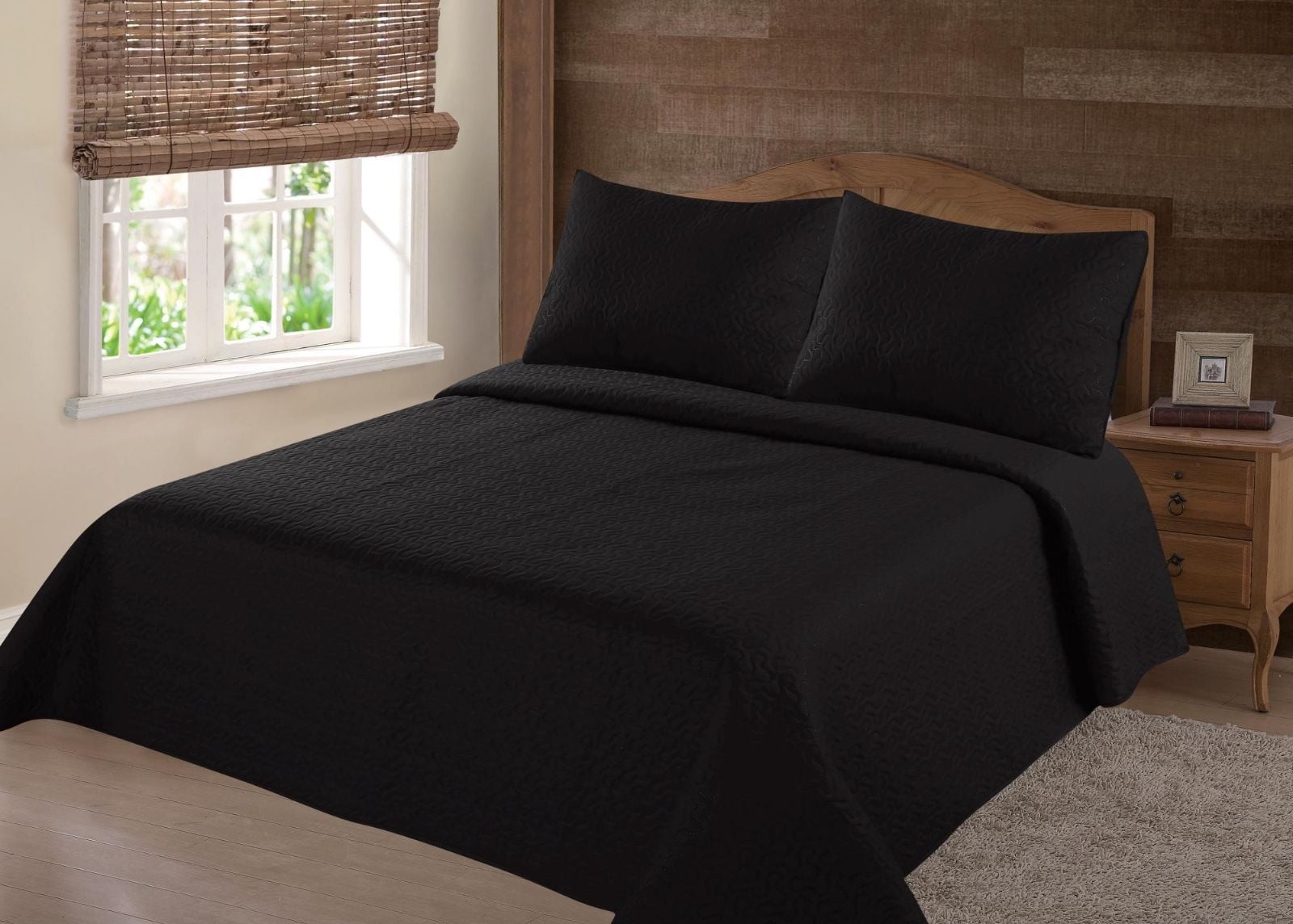 MODREN COLLECTION 1900 COUNT KING NENA BLACK SOLID CLOSOUT QUILT BEDDING BEDSPREAD COVERLET PILLOW CASES SET