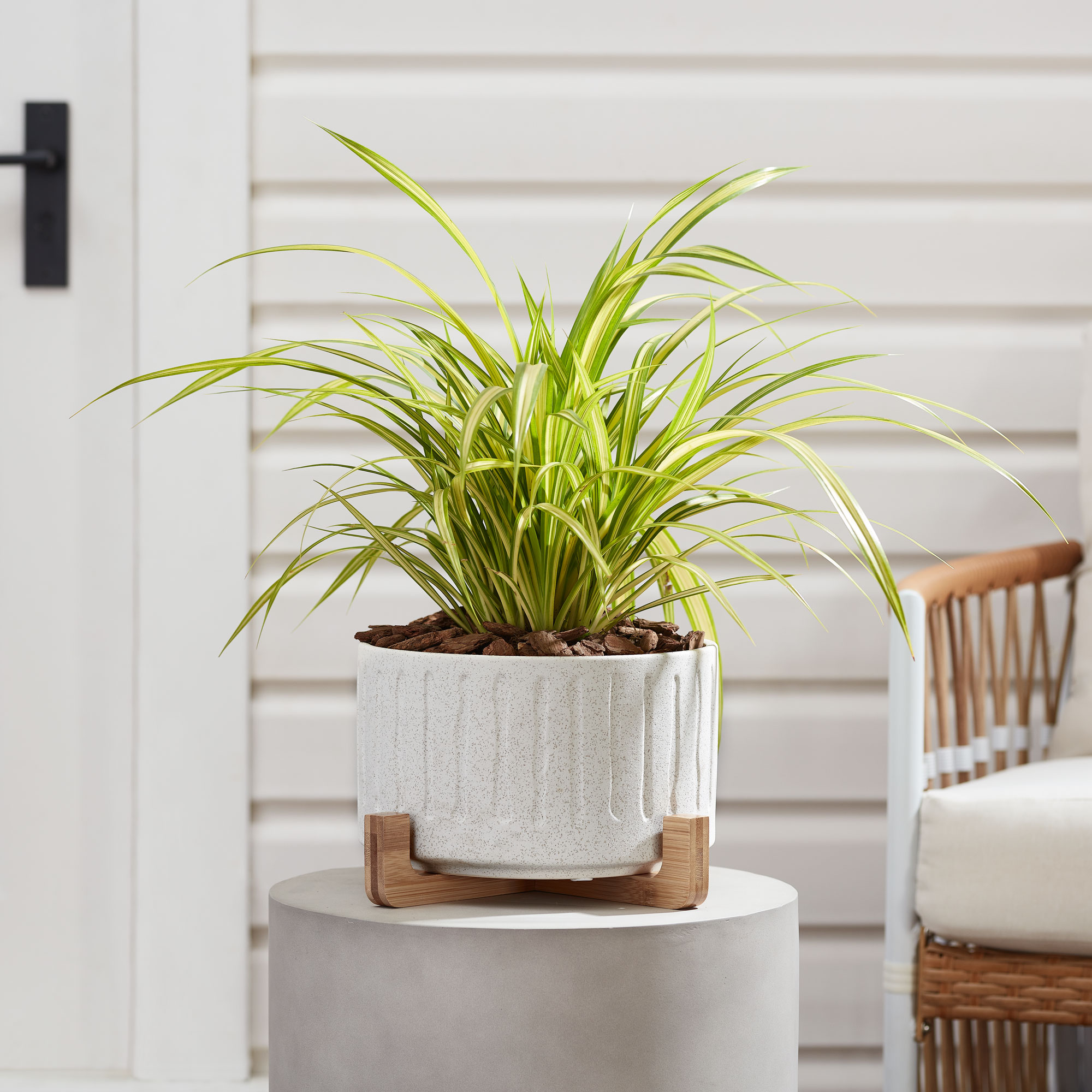Better Homes & Gardens August 10inch Ceramic Planter with Bamboo Stand, White