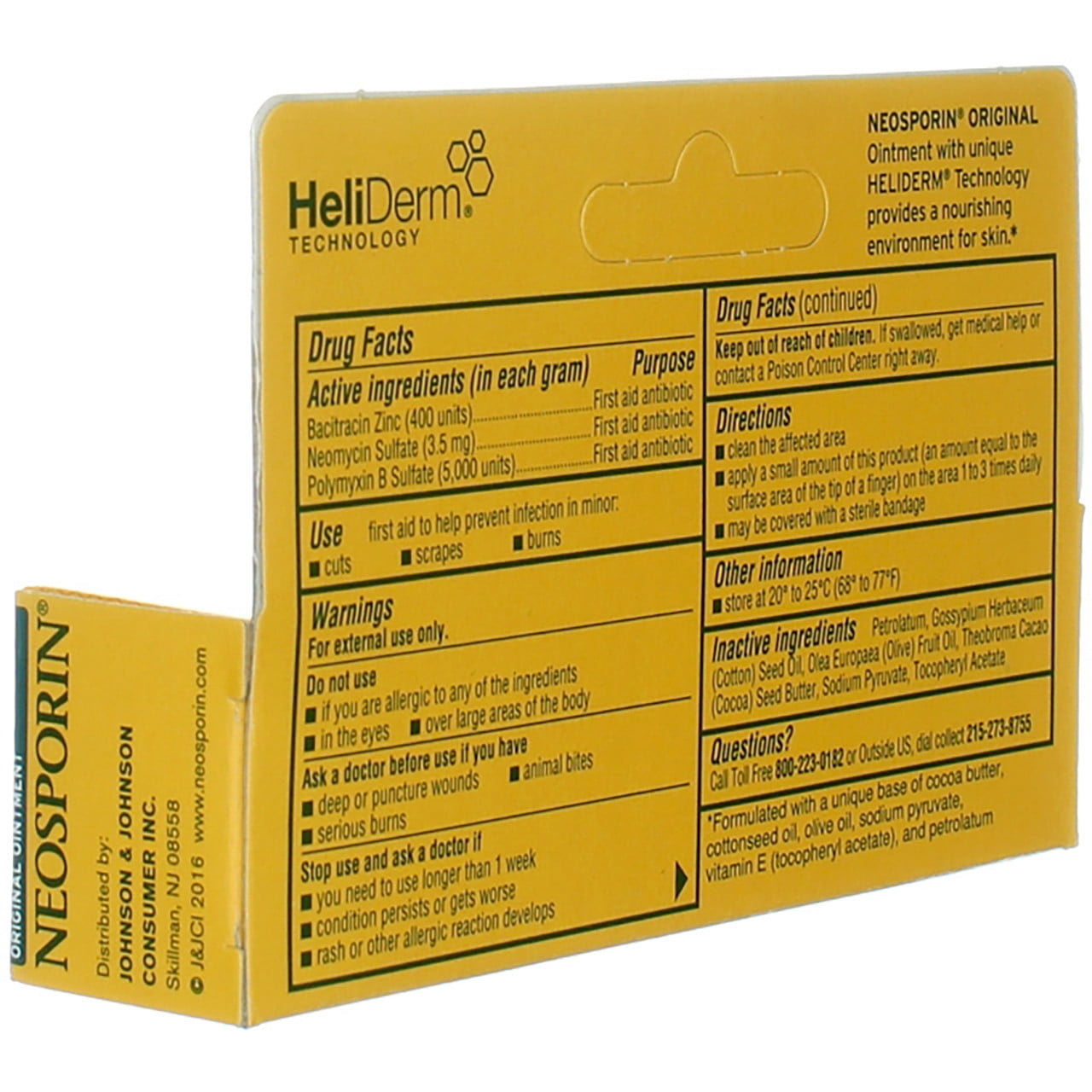 - Every cut. Every time.AntibioticJ & JActive Ingredients:Clean the affected area. Apply a small amount of this product (an amount equal to the surface area of the tip of a finger) on the area 1 to 3 times daily. May be covered with a sterile bandage. Keep in: kitchen, bathroom, workshop, travel bag. Other Information: Store at 20° to 25°C (68° to 77°F)Inactive Ingredients:Cocoa Butter; Cottonseed Oil; Olive Oil; Sodium Pyruvate; Vitamin E; White PetrolatumUses:First aid to help prevent infection in minor: Cuts. Scrapes. Burns. Effective, long-lasting infection protection. Triple antibiotic protection. #1 doctor recommended brand.For external use only. Do not use. If you are allergic to any of the ingredients. In the eyes. Over large areas of the body. Ask a doctor before use if you have. Deep or puncture wounds. Serious burns. Animal Bites. Stop use and ask a doctor if. You need to use longer than 1 week. Condition persists or gets worse. Rash or other allergic reaction develops. Keep out of reach of children. If swallowed, get medical help or contact a Poison Control Center right away.