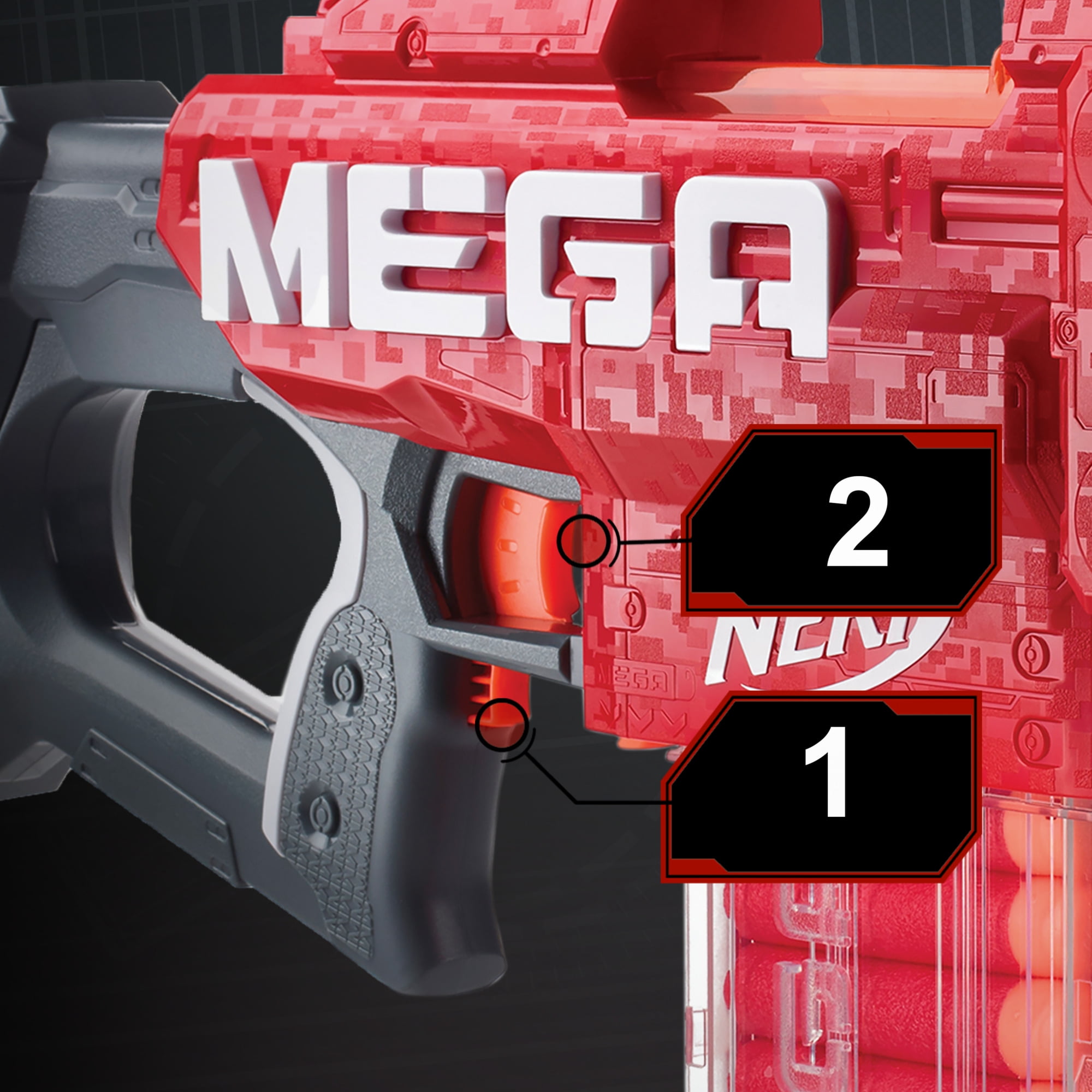 - BIG IN POWER, BIG IN SIZE: This big Nerf Mega blaster has the size and the power to overwhelm competitors with motorized, multi-dart, mega-sized blasting