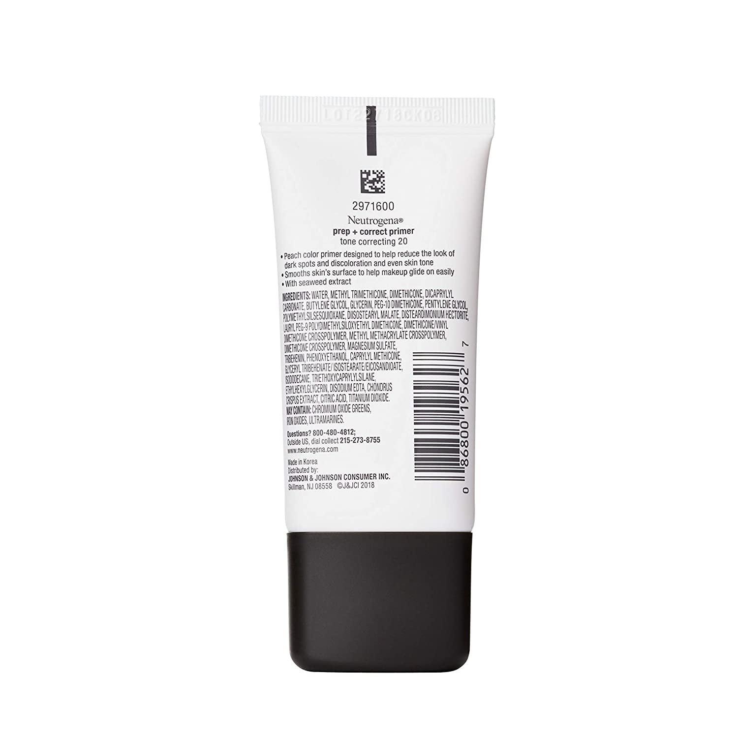 Product Description:Peach color primer designed to help reduce the look of dark spots and discoloration and even skin tone. Smooth skin’s surface to help makeup glide on easily. Formulated with seaweed extract.1-oz of Neutrogena Prep + Correct Peach Primer to visibly even skin tone and texture and reduce the look of dark spotsThis primer makeup improves dull-looking skin and smooths skins surface to improve texture and tone while diminishing the appearance of fine lines without settling into themThe silky, lightweight priming makeup is formulated with seaweed extract and boasts a gentle, non-greasy formula that won’t weigh you downTone-evening makeup helps to reduce the look of discoloration and hyperpigmentation with a soft peach colorMade to be worn alone or under makeup, the tone correcting face primer extends the life of makeup and helps it glide on more easilyIngredients :MAY CONTAIN: CHRONIUM OXIDE GREENS, IRONS OXIDES, ULTRAMARINES."}" data-sheets-userformat="{"2":515,"3":{"1":0},"4":[null,2,16776960],"12":0}" style="font-size: 10pt; font-family: verdana, arial, helvetica, sans-serif;">WATER, METHYL TRIMETHICONE, DIMETHICONE, DICAPRYLYL CARBONATE, BUTYLENE GLYCOL, GLYCERIN, PEG-10 DIMETHICONE, PENTYLENE GLYCOL, POLYMETHYLSILSESQUIOXANE, DIISOSTEARYL MALATE, DISTEARDIMONIUM HECTORITE, LAURYL PEG-9 POLYDIMETHYLSILOXYETHYL DIMETHICONE, DIMETHICONE/VINYL DIMETHICONE CROSSPOLYMER, METHYL METHACRYLATE CROSSPOLYMER, DIMETHICONE CROSSPOLYMER, MAGNESIUM SULFATE, TRIBEHENIN, PHENOXYETHANOL, CAPRYLYL METHICONE, GLYCERYL TRIBEHENATE/ISOSTEARATE/EICOSANDIOATE, ISODODECANE, TRIETHOXYCAPRYLYLSILANE, ETHYLHEXYGLYCERIN, DISODIUM EDTA, CHONDRUS CRISPUS EXTRACT, CITRIC ACID, TITANIUM DIOXIDE.