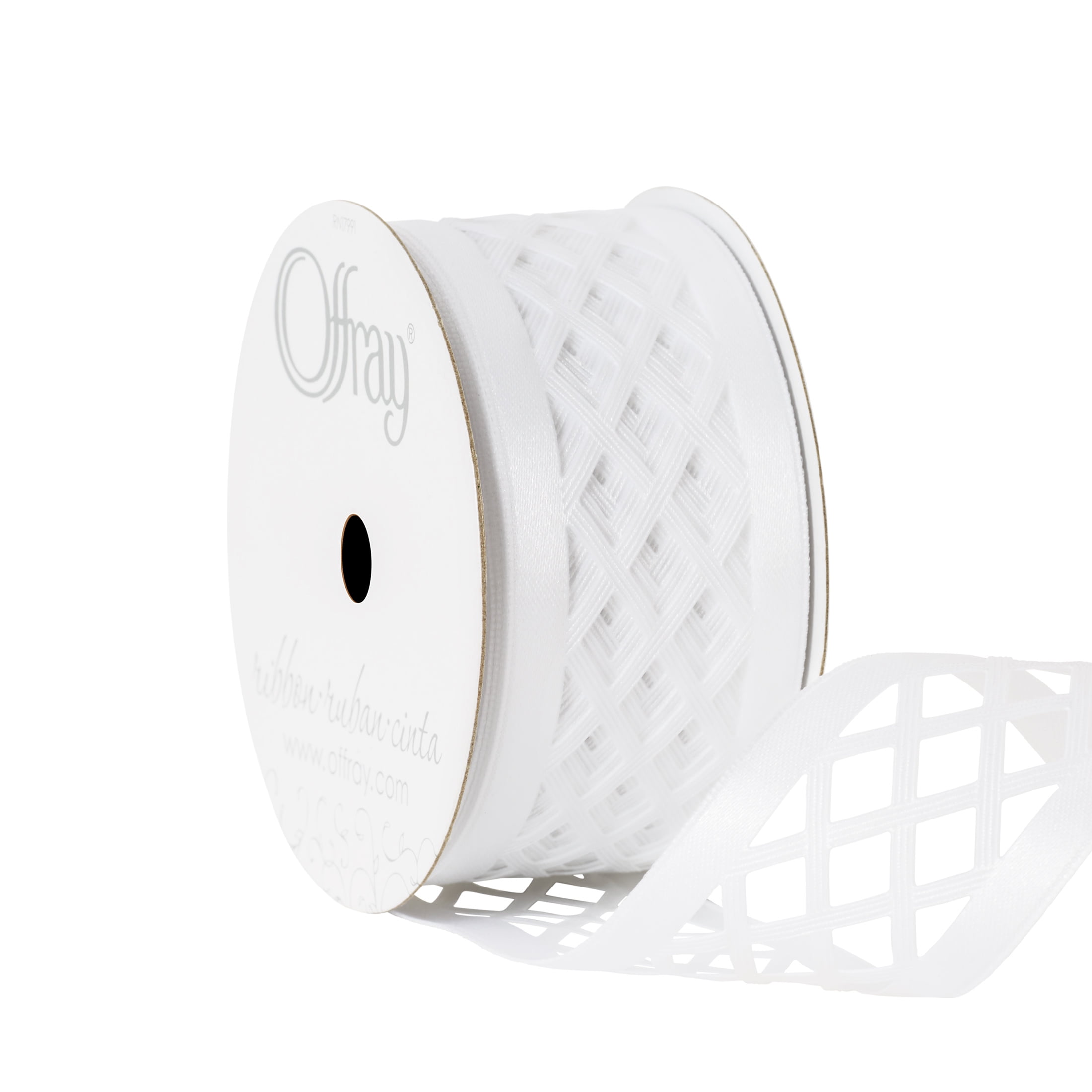 Offray Ribbon, White 1 1/2 inch Cutout Satin Ribbon for Sewing, Crafts, and Wedding, 9 feet, 1 Each: