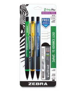 Twist-Erase III Mechanical Pencils feature a sturdy, well-balanced barrel that makes it the most popular Twist-Erase Pencil. Protective tip design stabilizes lead to reduce lead breakage. Latex-free grip delivers maximum comfort and control. With the jumbo Twist-Up Eraser, you’ll suffer no smudges, no paper tears and no ghosts. Each mechanical pencil is preloaded with Pentel Super Hi-Polymer HB lead. Lead never needs sharpening, is super strong and produces a dark line that scans on standardized tests. Pencils are refillable with Pentel Super Hi-Polymer Lead and E10 jumbo refill eraser.