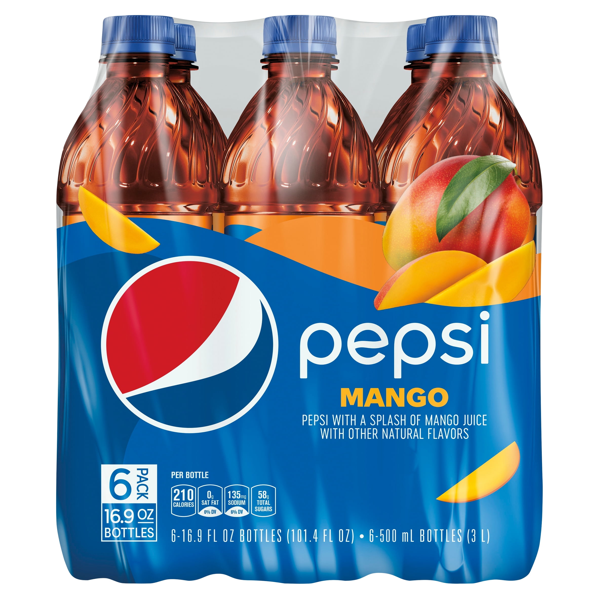 Pepsi Cola Mango Soda Pop, 16.9 oz, 6 Pack Bottles