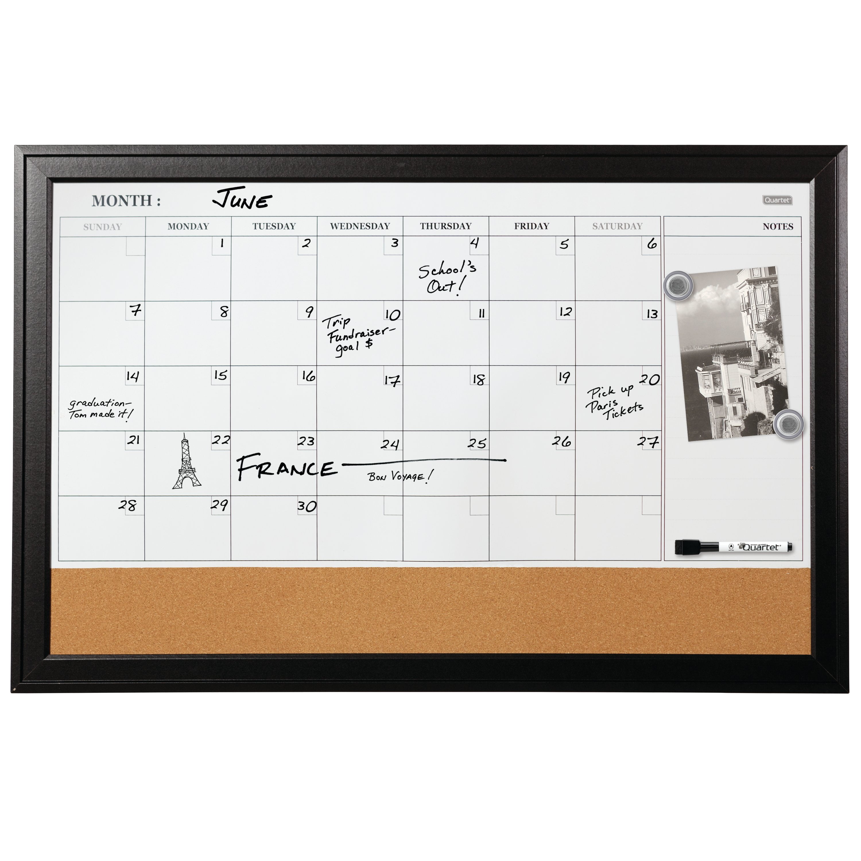 Quartet Magnetic Combination Calendar Board 17 x 23 Dry-Erase Cork Espresso Frame Combination Boards