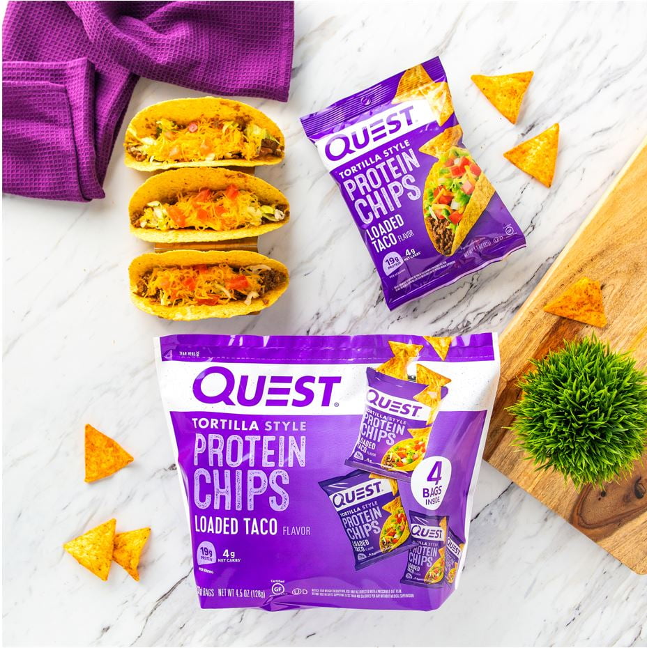 Quest Tortilla Style Protein Chips, Low Carb, Baked, Loaded Taco, 4.5 oz, 4 Count