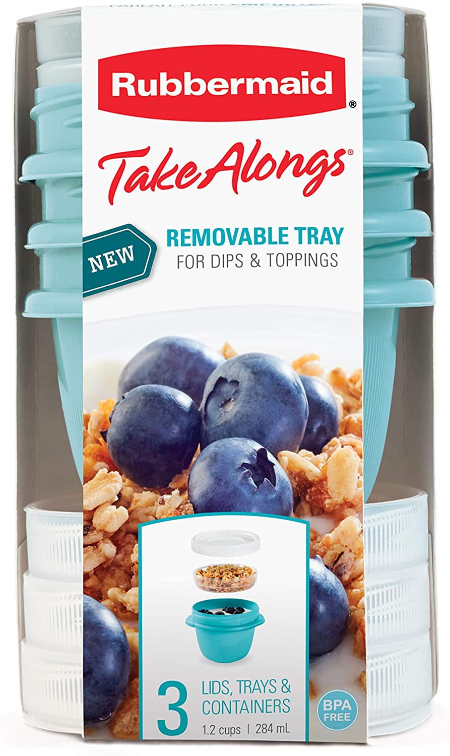 Satisfy snack cravings with the Rubbermaid TakeAlongs 1.2-Cup On-the-Go Snack Food Storage Containers. Designed specifically as a snack cup, the divided food container features a convenient removable tray that keeps wet and dry foods, like yogurt and granola, separated. With twist lids and leak-proof seals, these containers let you take your favorite snack to work, school, or anywhere you want to go.