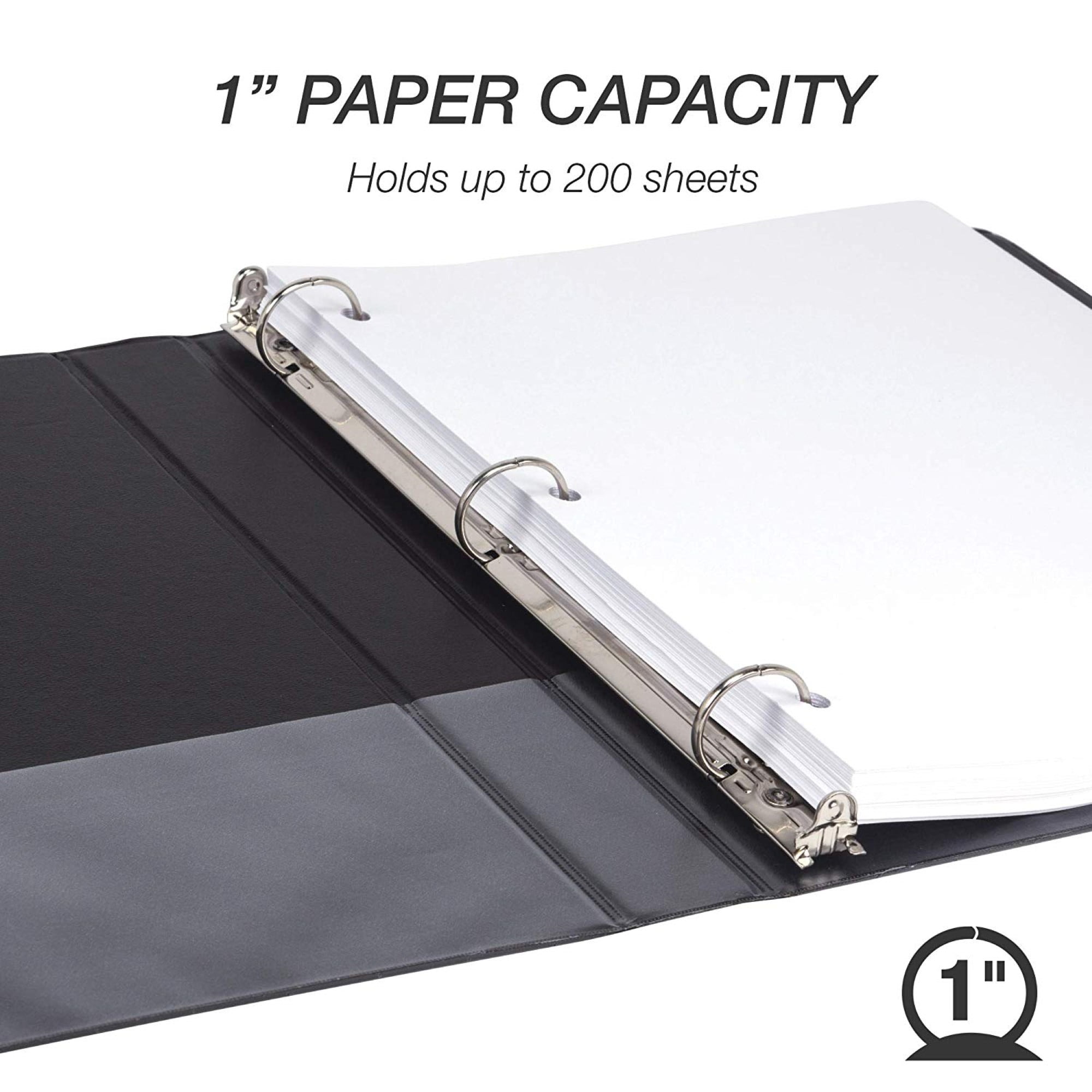 - More Value Adding Features – 1" round rings mounted on back lid hold up to 225 sheets, allows pages to lay flat, reduce wear on punched pages and provide a clean looking spine.